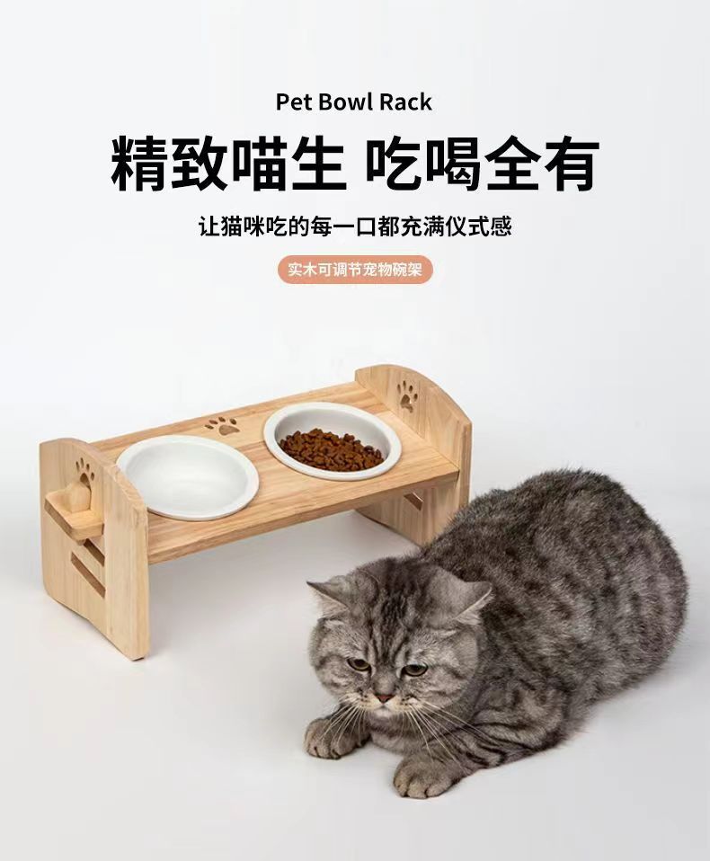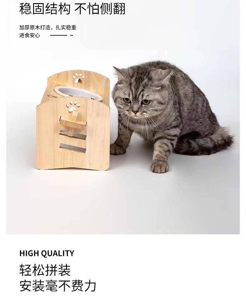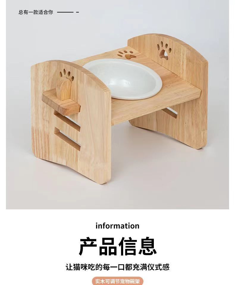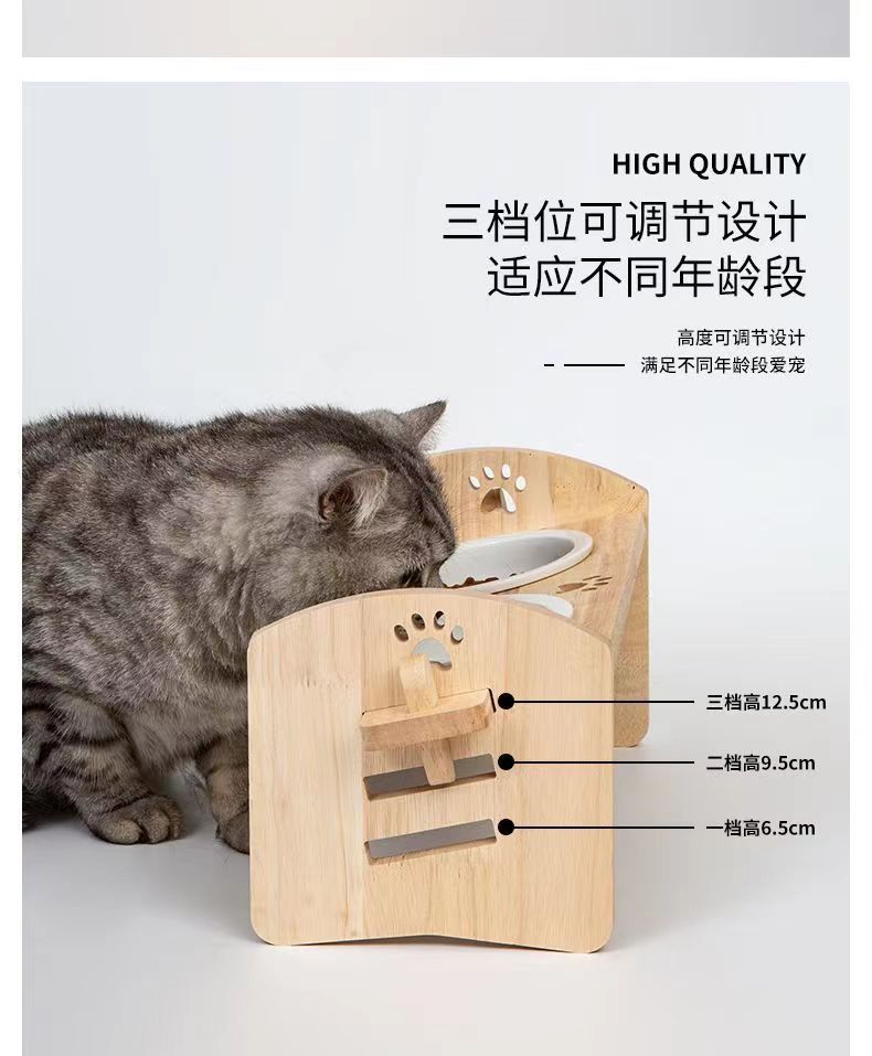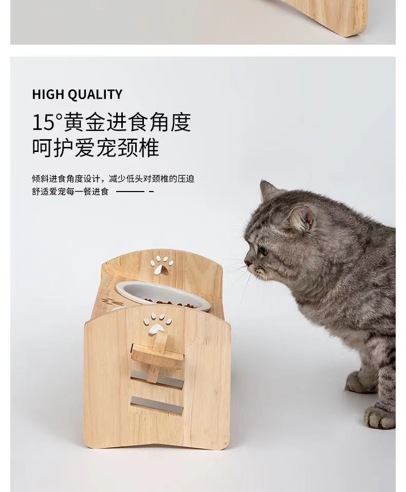 고양이를 위한 단단한 나무 고양이 그릇 랙, 대형 및 중형 개를 위한 경사진 입구 세라믹 가정용 고양이 먹이 받침대, 높이 조절 가능, 넘어짐 방지스토어 가기