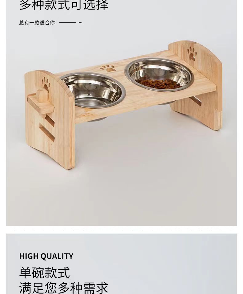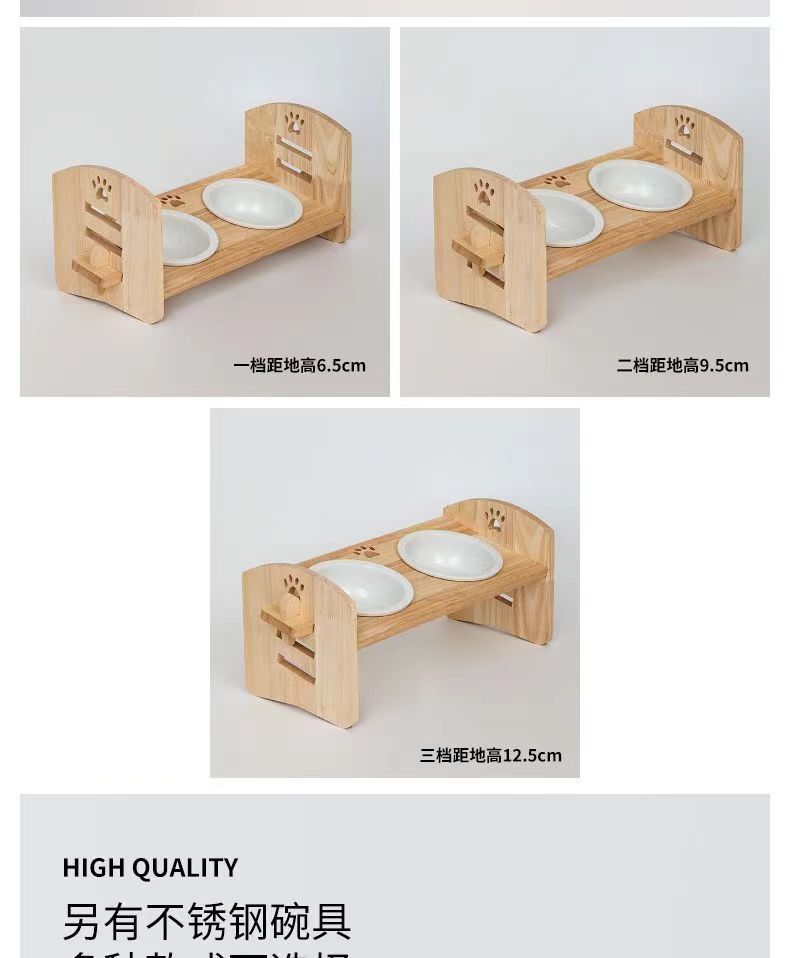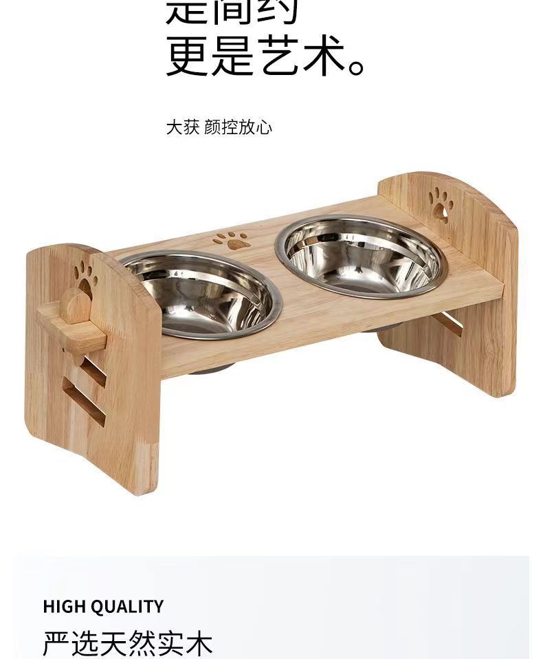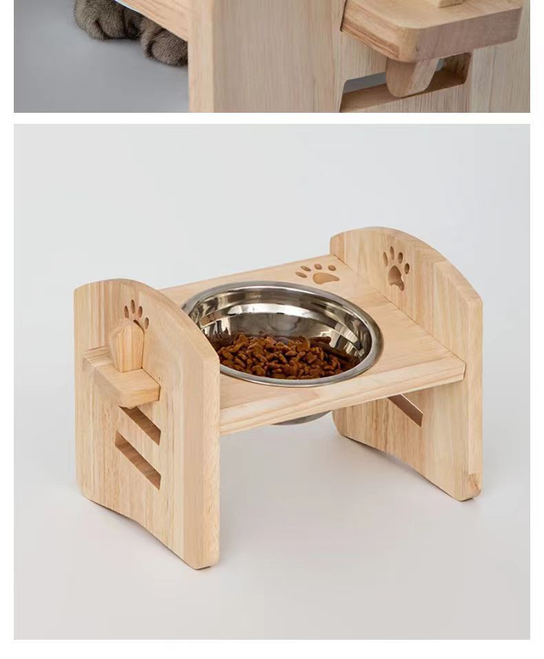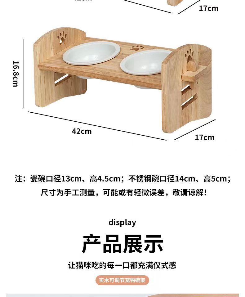 고양이를 위한 단단한 나무 고양이 그릇 랙, 대형 및 중형 개를 위한 경사진 입구 세라믹 가정용 고양이 먹이 받침대, 높이 조절 가능, 넘어짐 방지스토어 가기