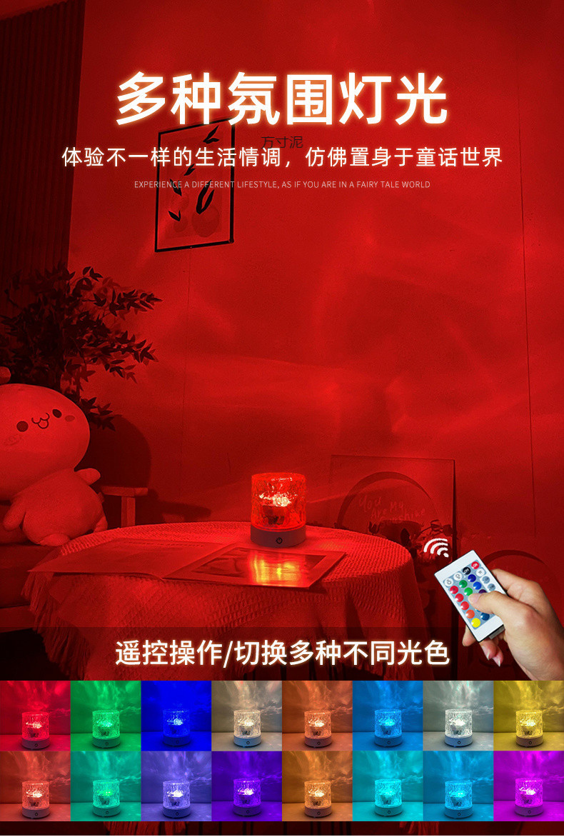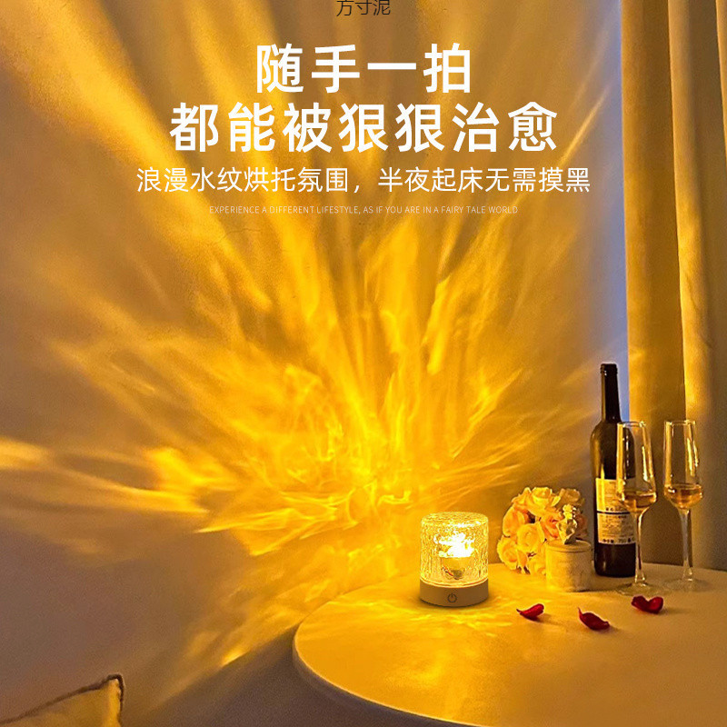 동적 물결 무늬 분위기 램프 인터넷 연예인 테이블 램프 침실 머리맡 물결 무늬 램프 USB 충전 야간 조명 대외 무역 도매