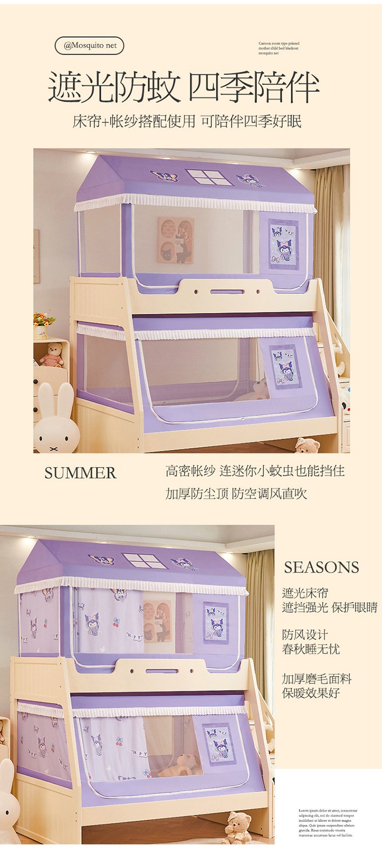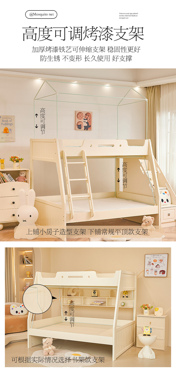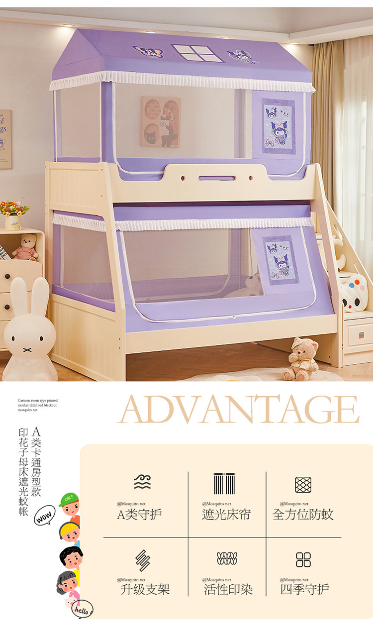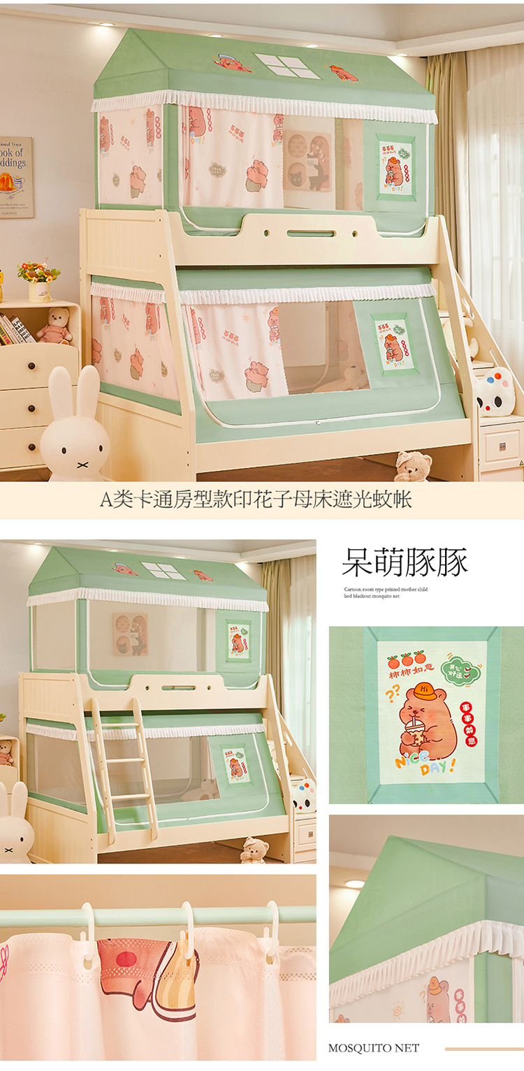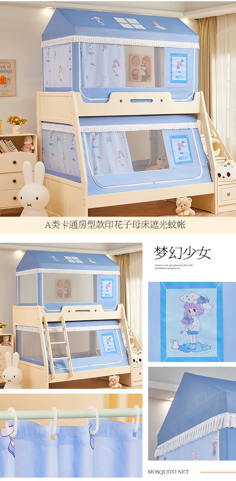 2025 새로운 스타일의 어린이용 이층 침대 모기장, 가정용 사다리꼴 이층 침대, 이층 침대, 차광 커튼 모기장스토어 가기