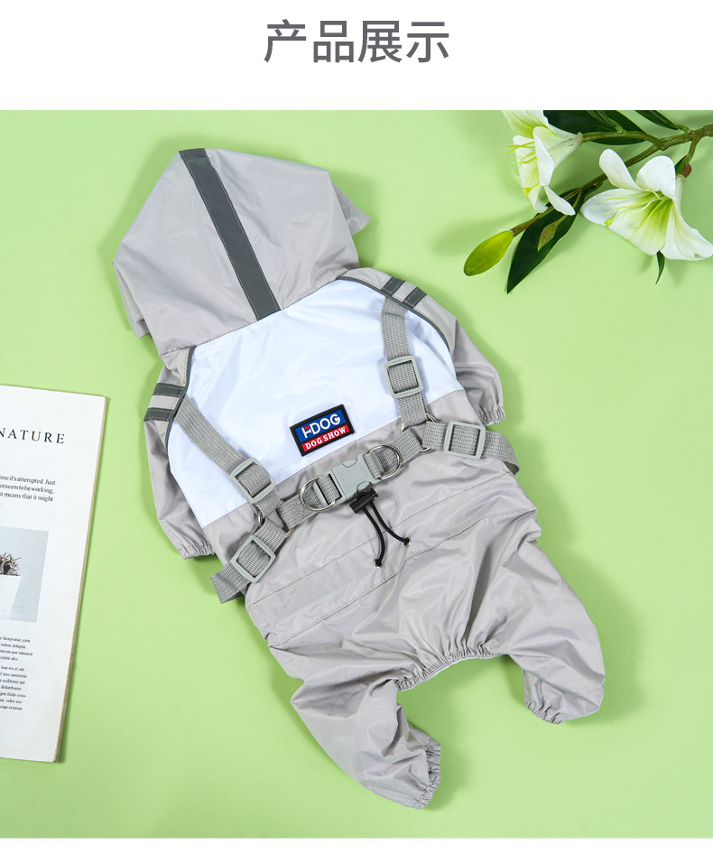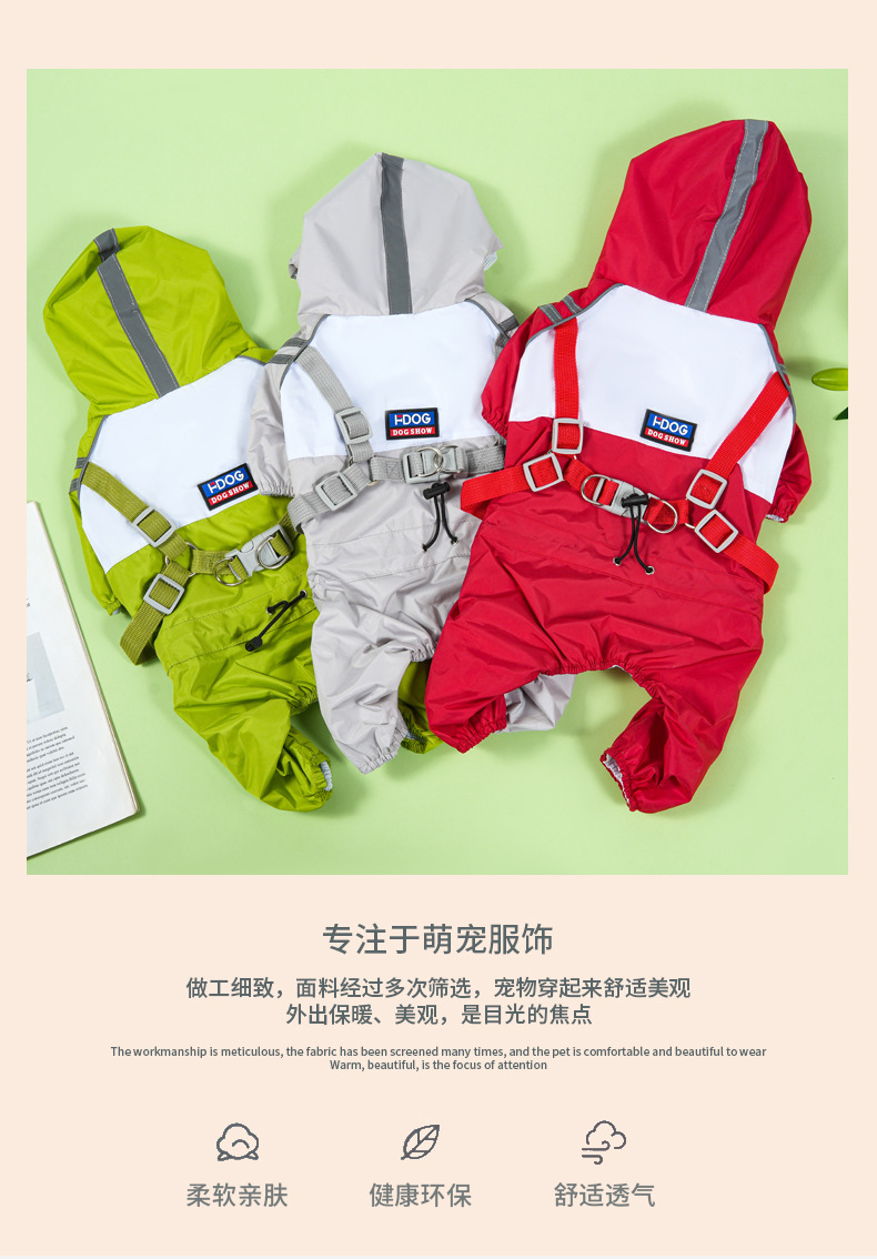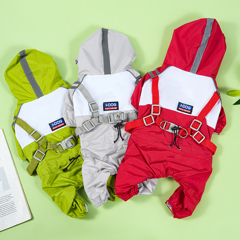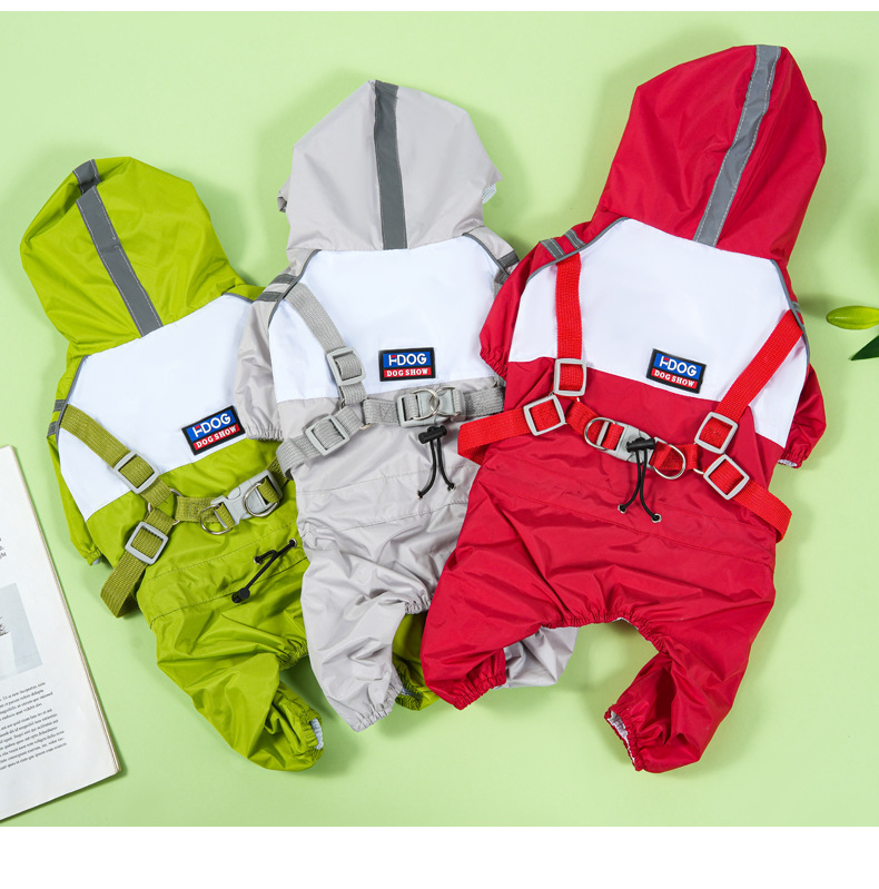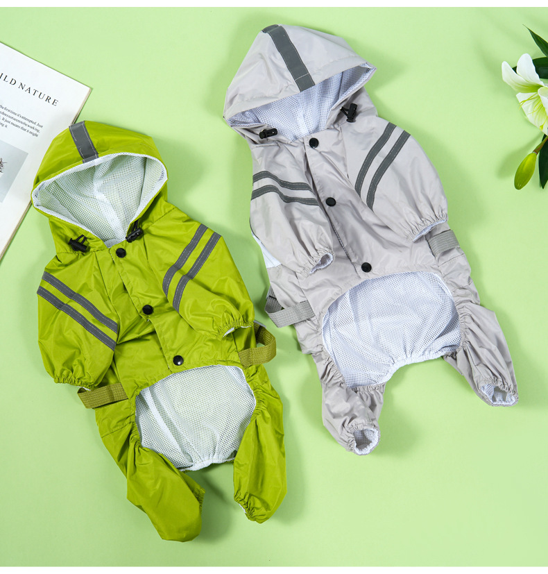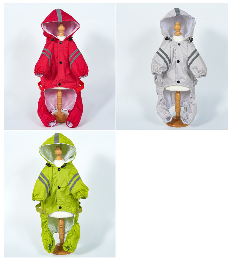 국경 간 개 네 다리 비옷 방수 가슴 스트랩 중소형 개 애완 동물 판초 반사 통기성 강아지 비옷