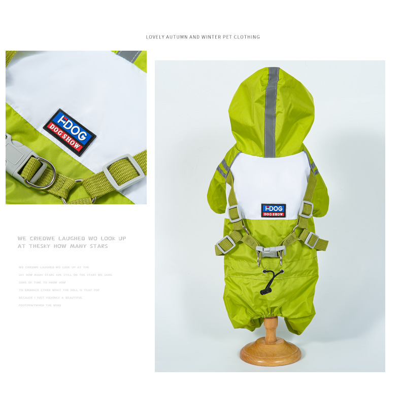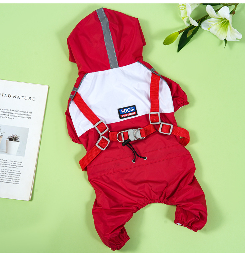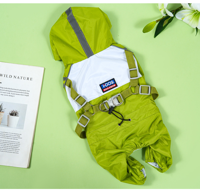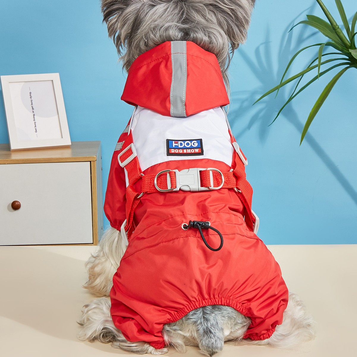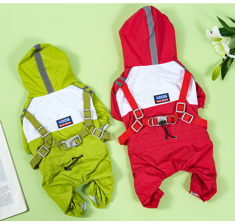 국경 간 개 네 다리 비옷 방수 가슴 스트랩 중소형 개 애완 동물 판초 반사 통기성 강아지 비옷