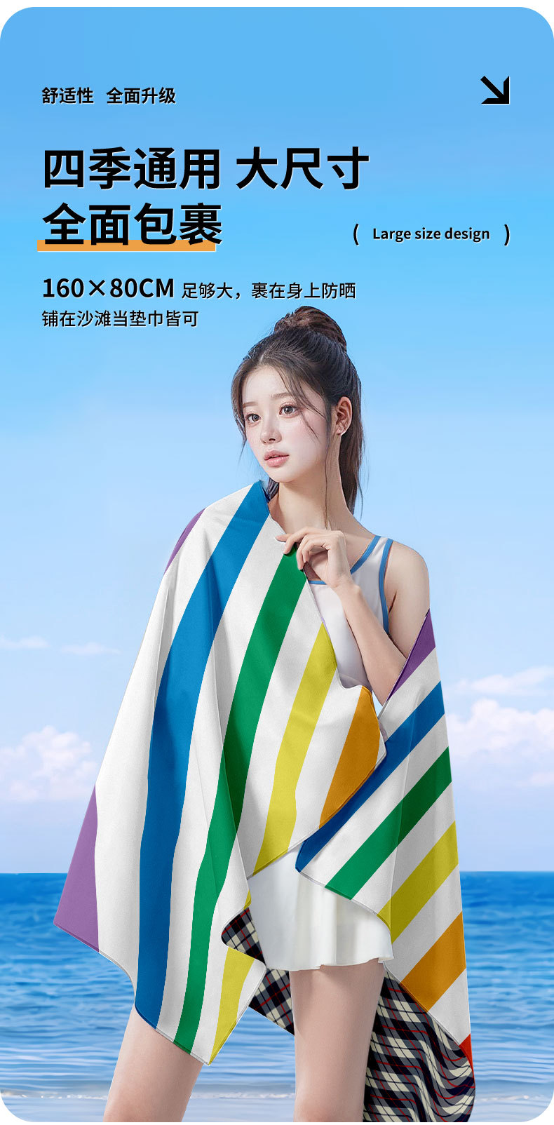 소스 제조업체 양면 벨벳 스트라이프 비치 타월 여행 자외선 차단제 목도리 인쇄 수건 흡수성 빠른 건조 목욕 타월 도매스토어 가기