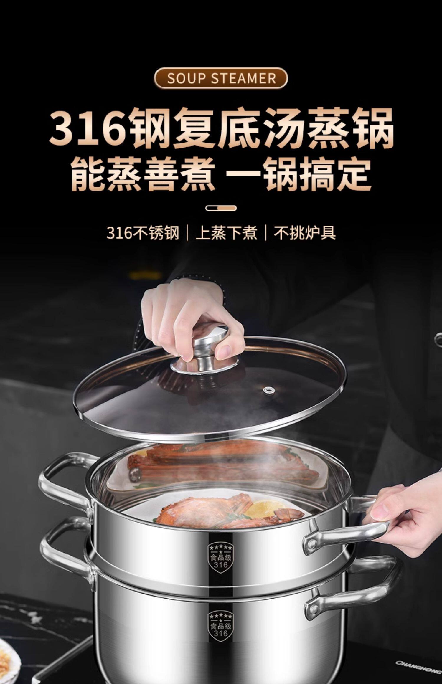 증기선 가정용 다기능 스테인레스 스틸 이중층 두꺼운 수프 냄비 대용량 2 층 스튜 다층 스테인레스 스틸 증기선스토어 가기