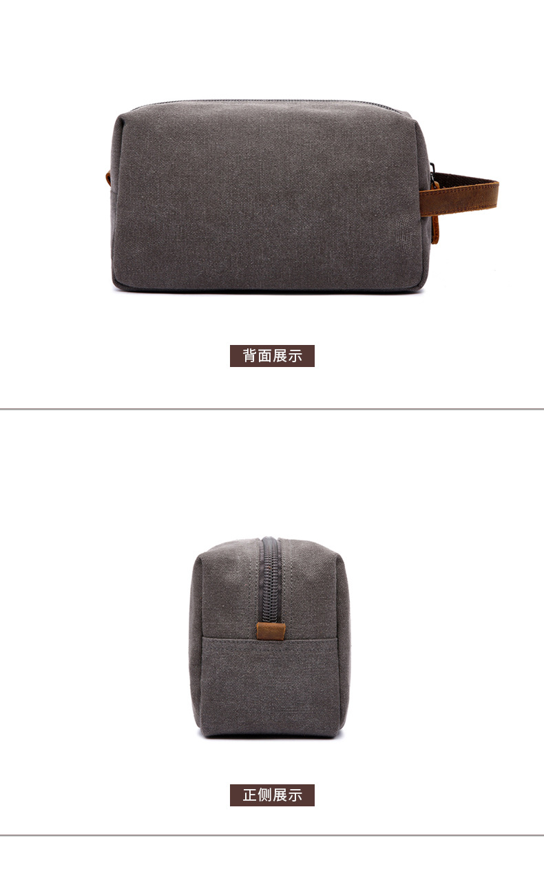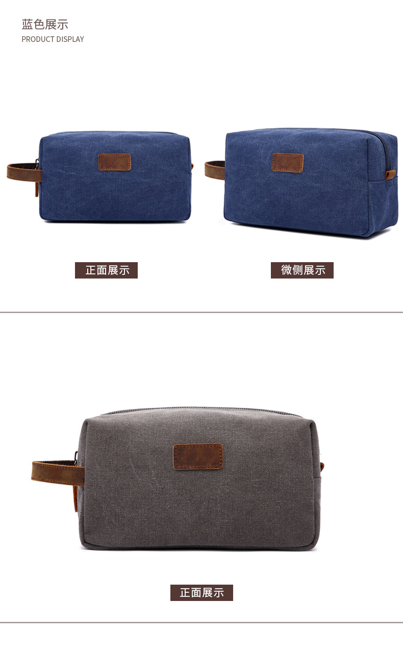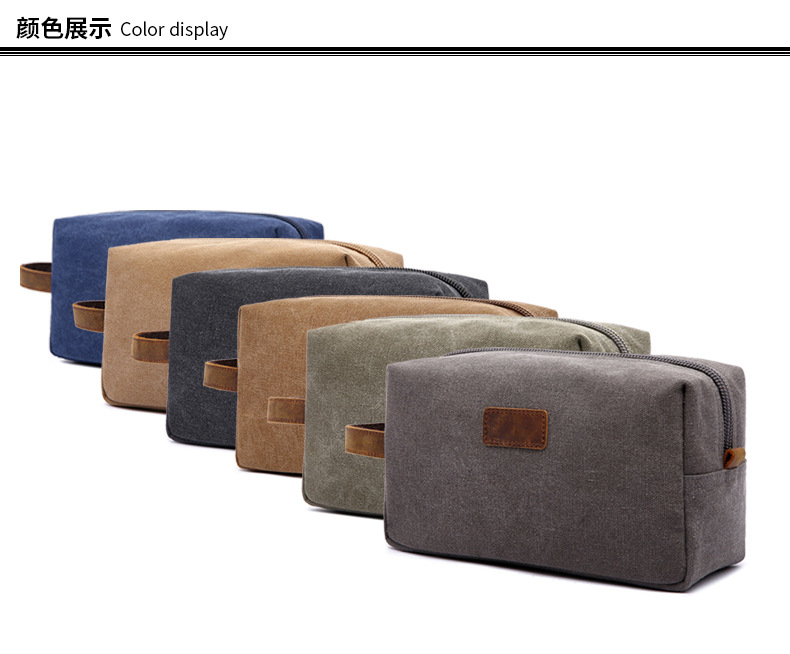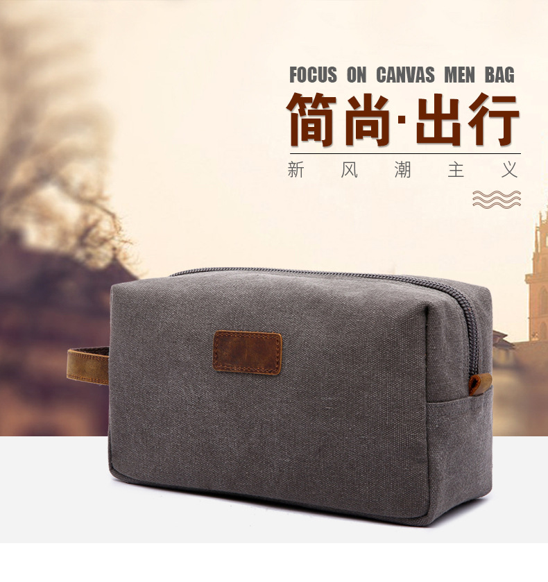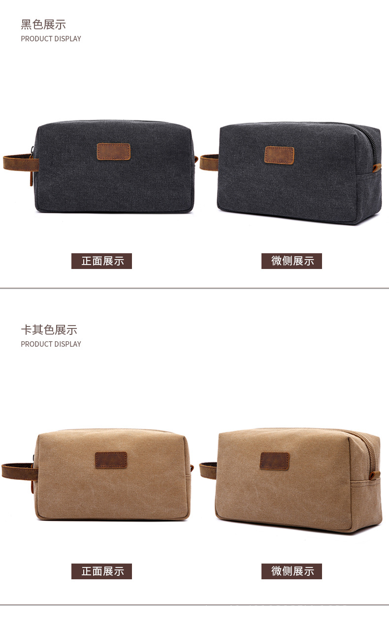 아마존 대외 무역 캔버스 지퍼 사이드 샌드위치 라벨 간단한 유니섹스 화장품 가방 단색 손 여행 가방