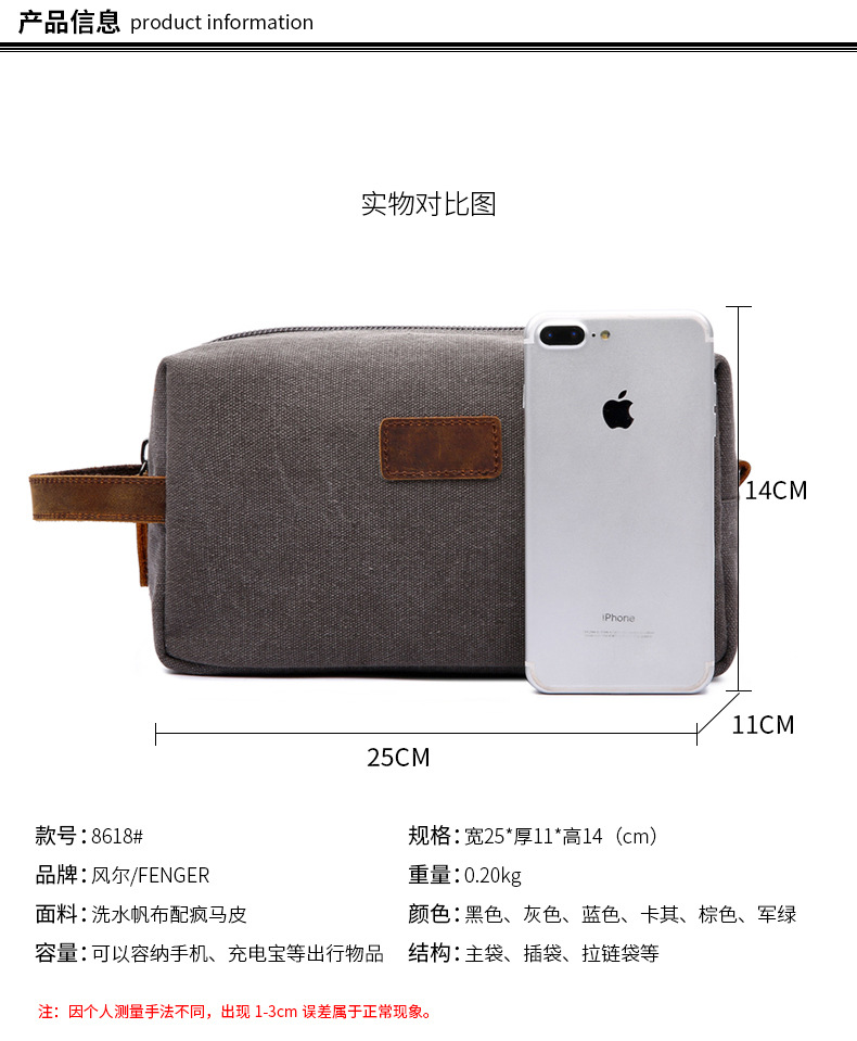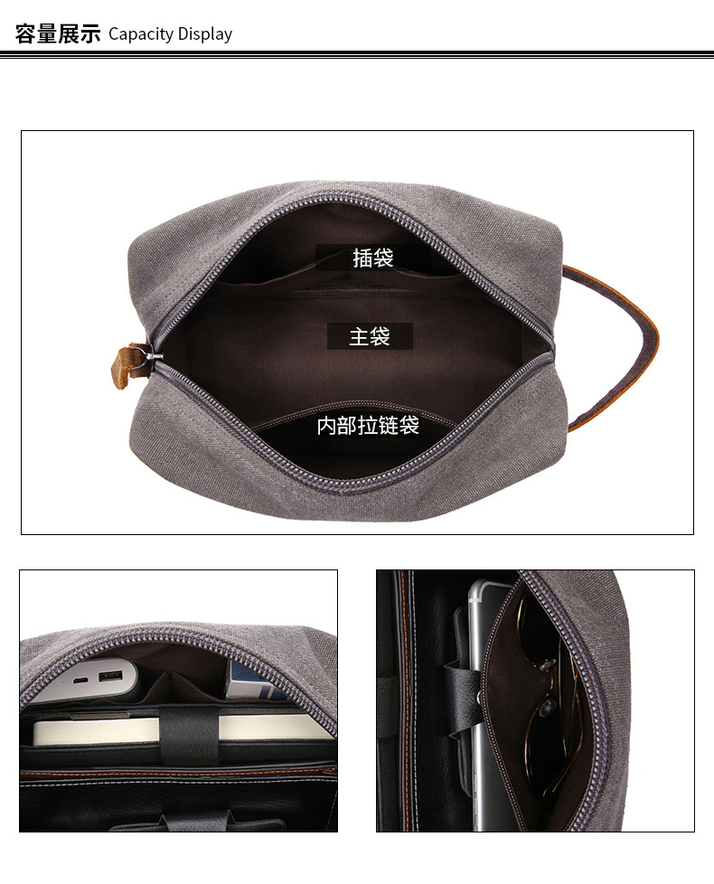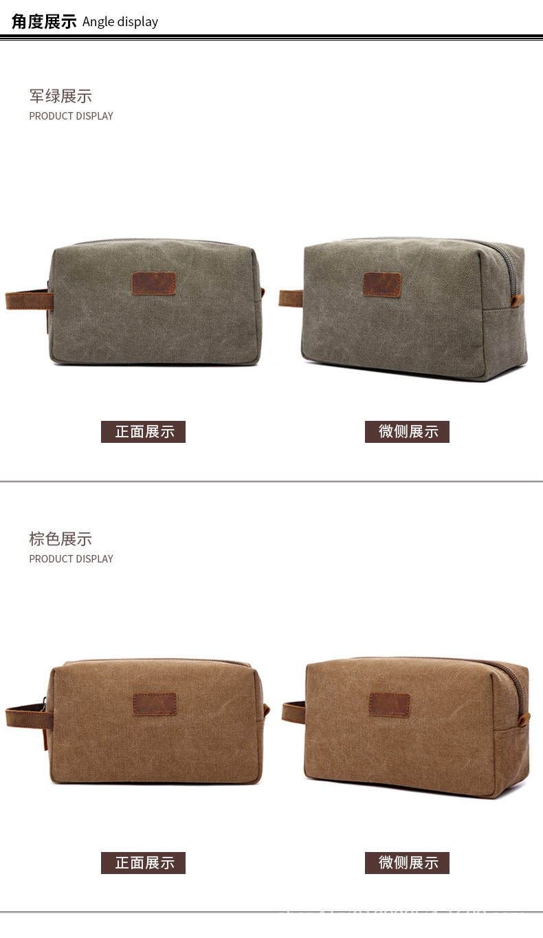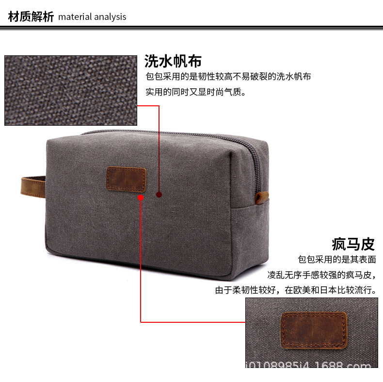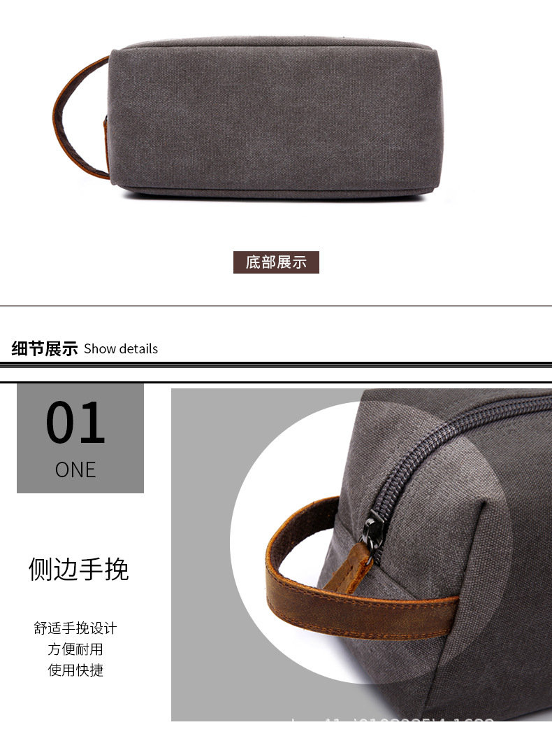 아마존 대외 무역 캔버스 지퍼 사이드 샌드위치 라벨 간단한 유니섹스 화장품 가방 단색 손 여행 가방