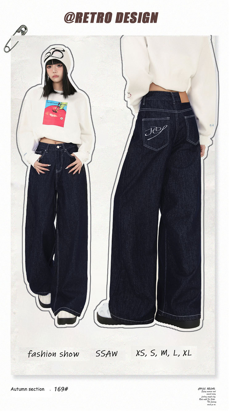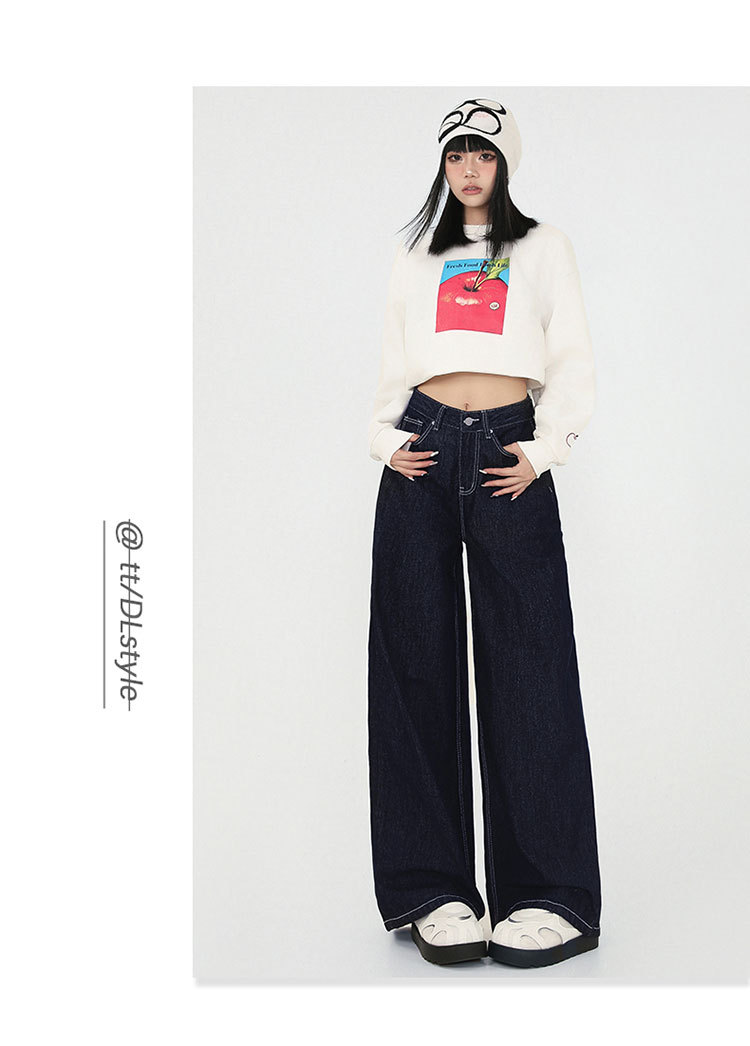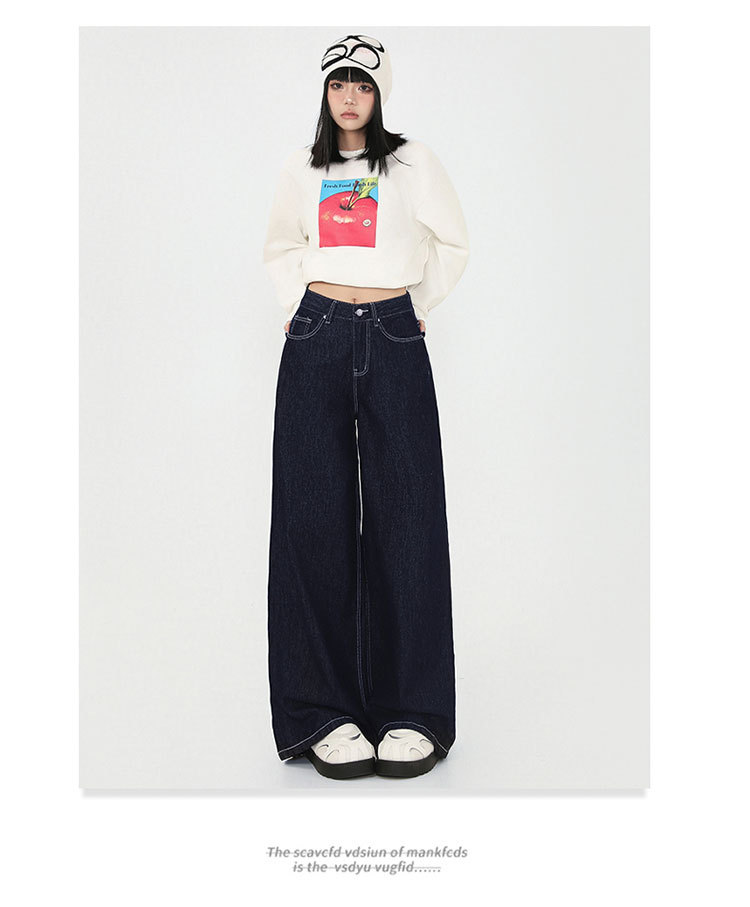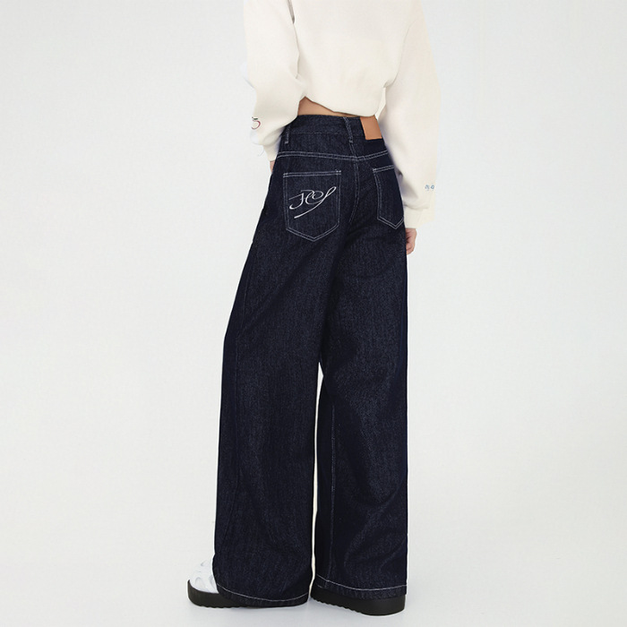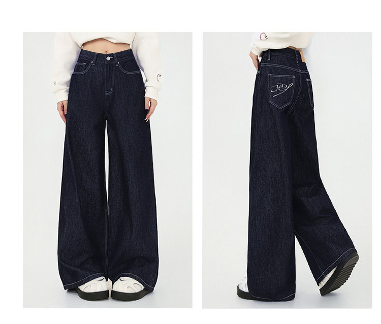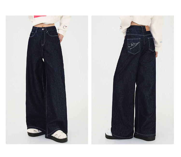 아메리칸 빈티지 하이 웨이스트 루즈 와이드 레그 팬츠 다목적 가을 겨울 다크 블루 청바지 여성 & 바지 엑스트라 롱 다크 블루 바지스토어 가기