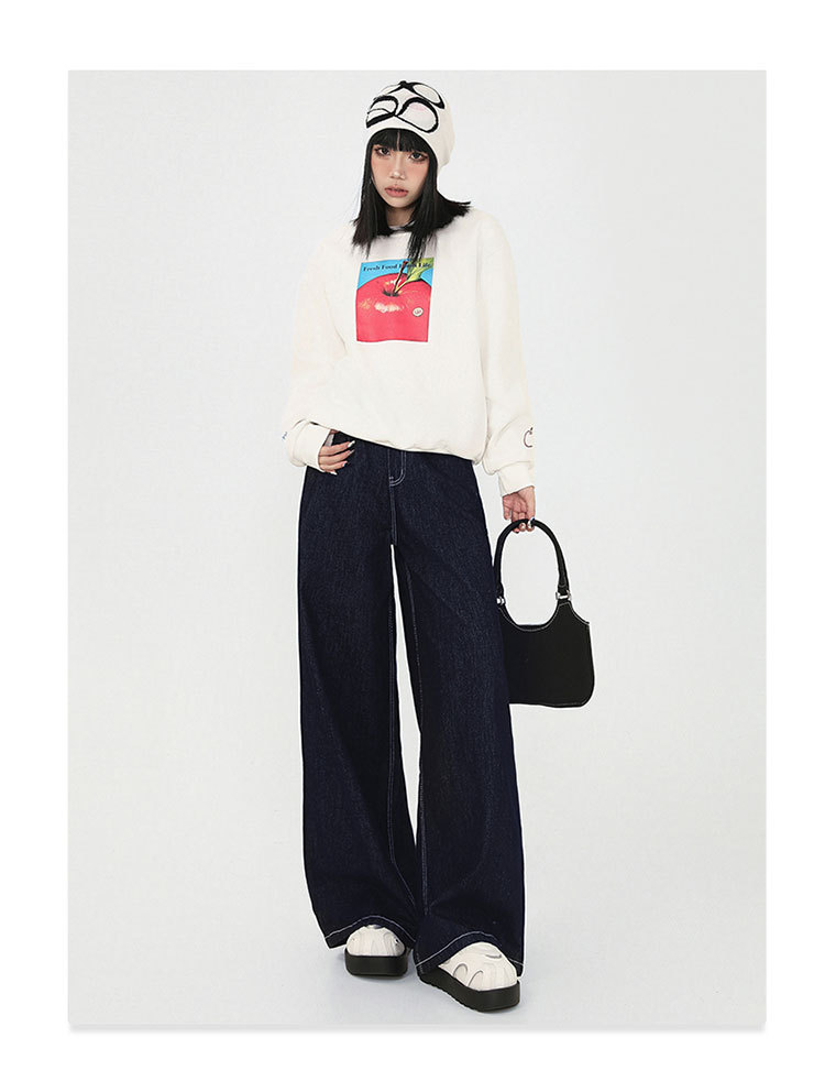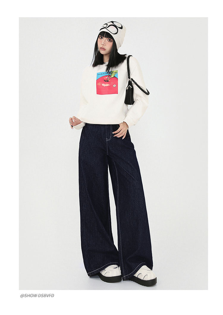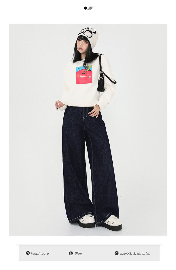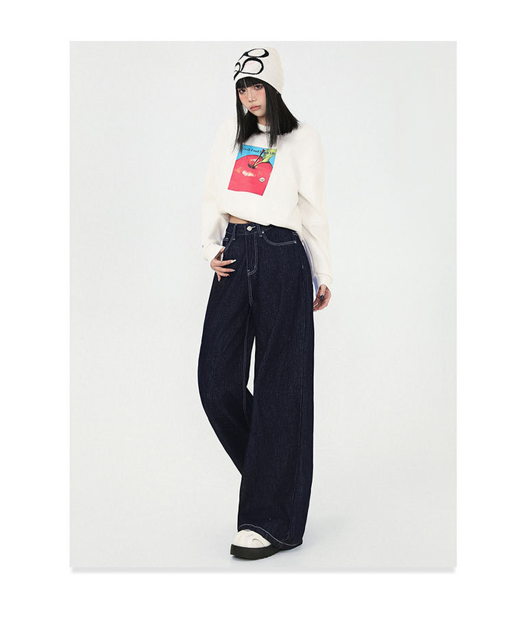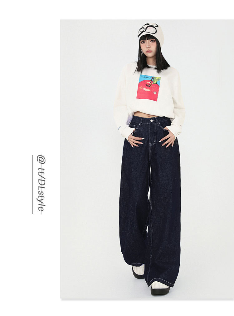 아메리칸 빈티지 하이 웨이스트 루즈 와이드 레그 팬츠 다목적 가을 겨울 다크 블루 청바지 여성 & 바지 엑스트라 롱 다크 블루 바지스토어 가기