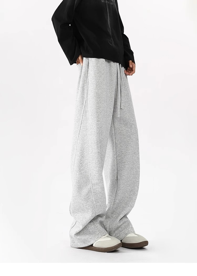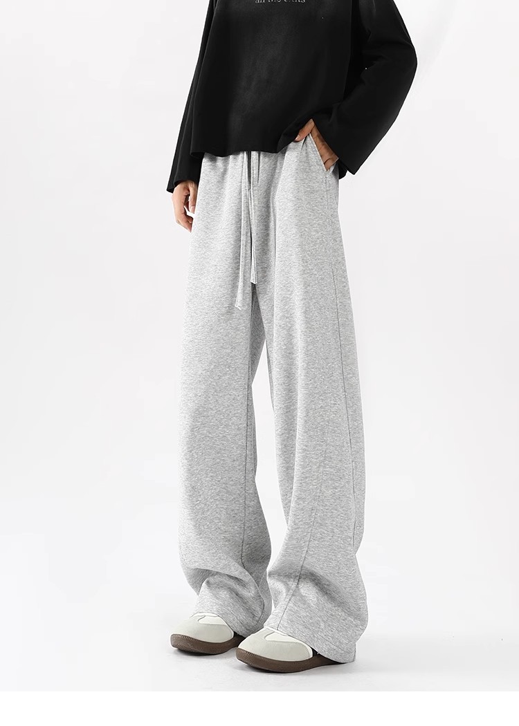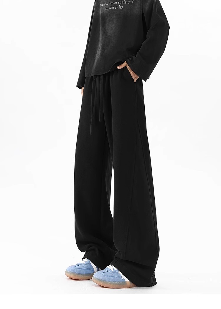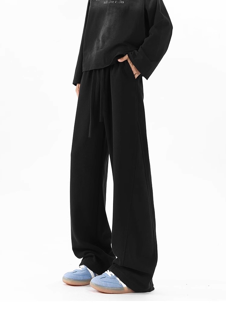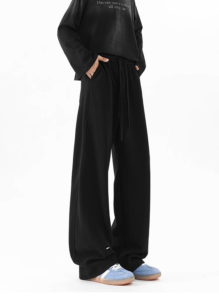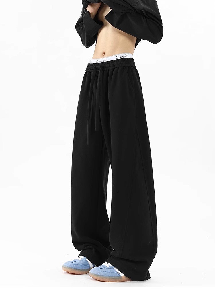 2025 새로운 스타일 높은 허리 바지 미국 스타일 무거운 바지 남자와 여자의 넓은 다리 유행 느슨한 캐주얼 스포츠 긴 바지 스트레이트 바지스토어 가기