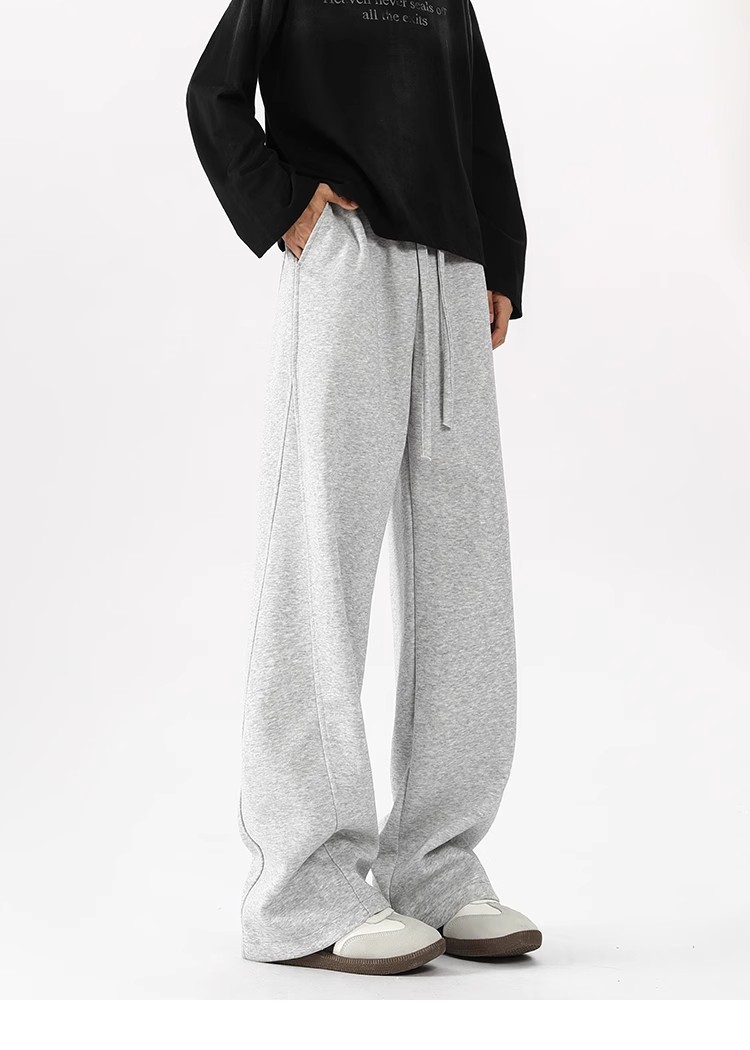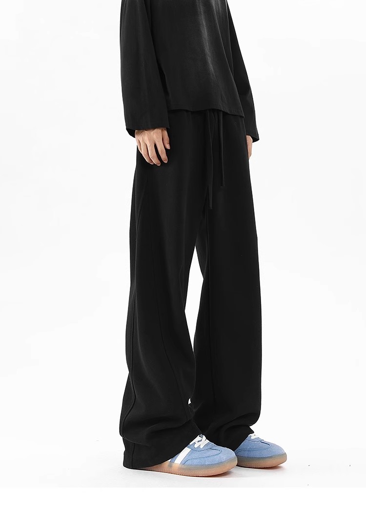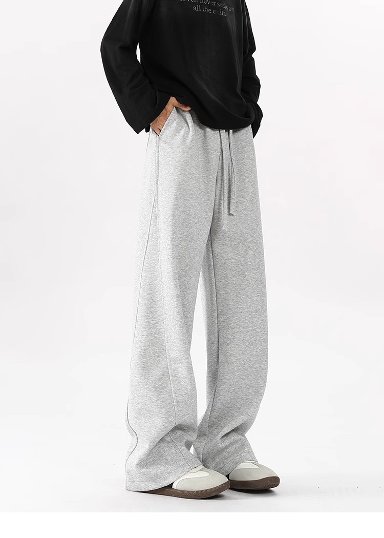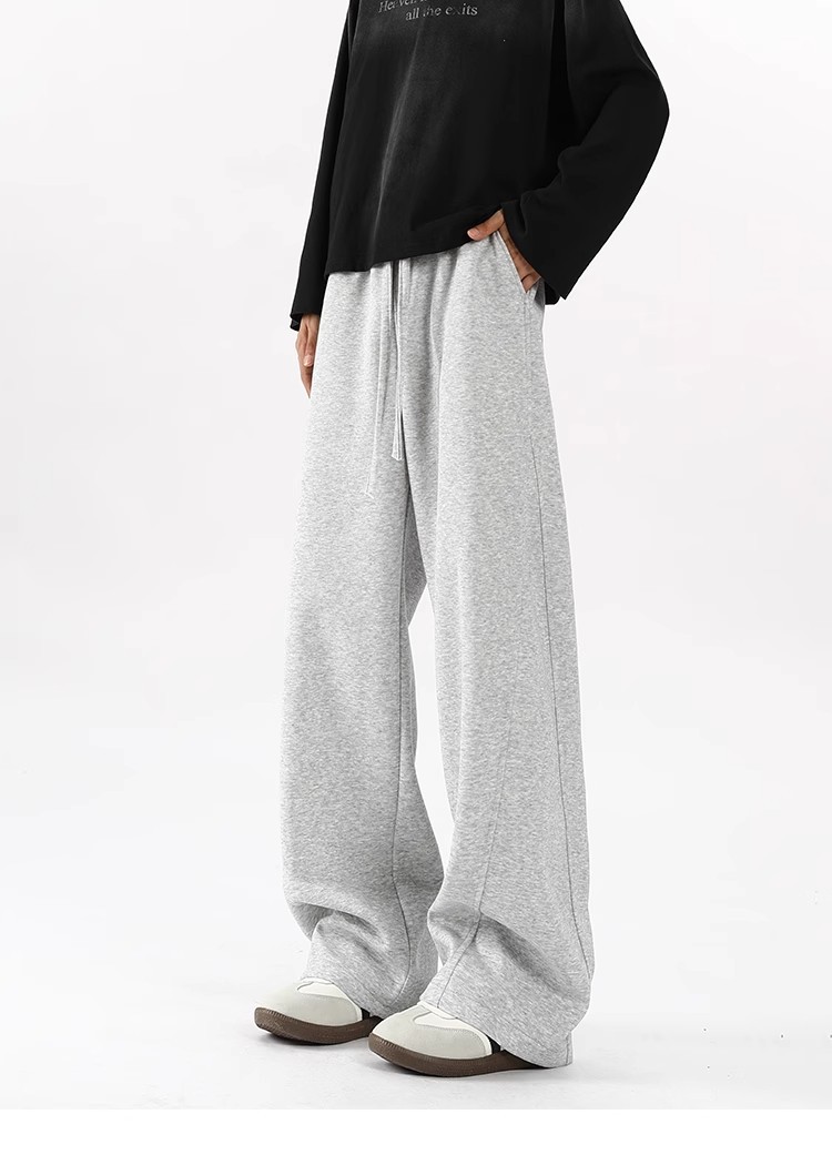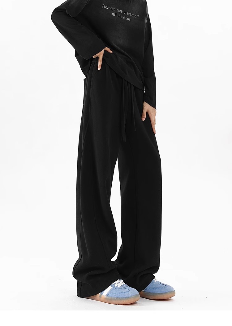 2025 새로운 스타일 높은 허리 바지 미국 스타일 무거운 바지 남자와 여자의 넓은 다리 유행 느슨한 캐주얼 스포츠 긴 바지 스트레이트 바지스토어 가기