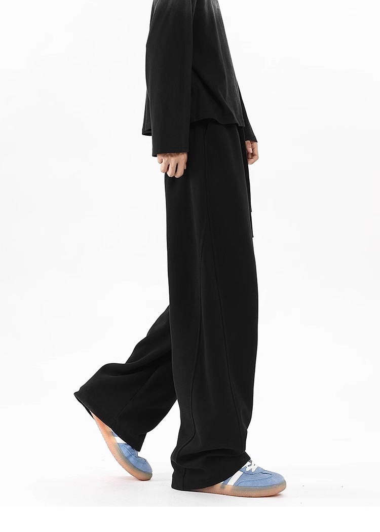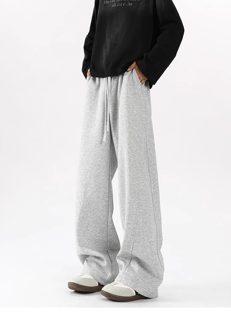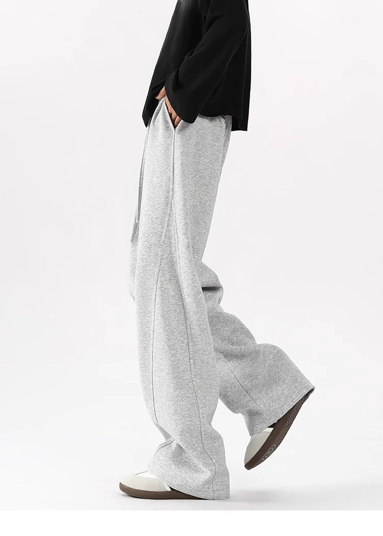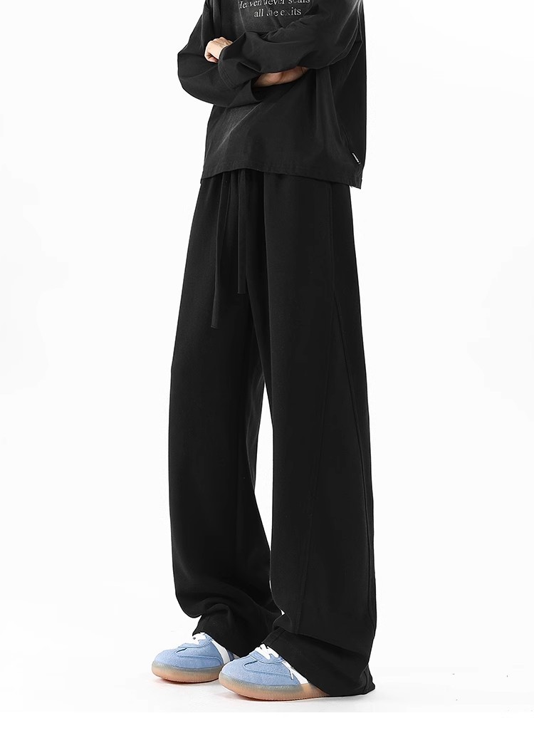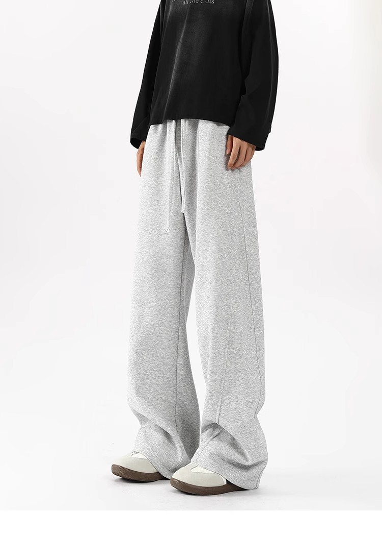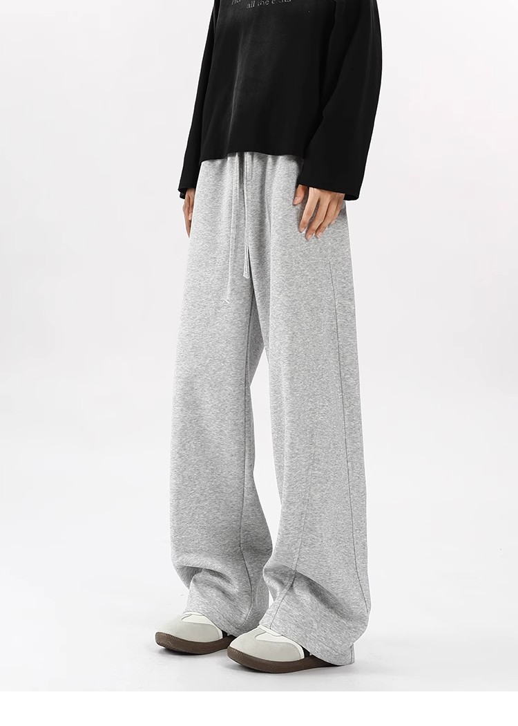 2025 새로운 스타일 높은 허리 바지 미국 스타일 무거운 바지 남자와 여자의 넓은 다리 유행 느슨한 캐주얼 스포츠 긴 바지 스트레이트 바지스토어 가기