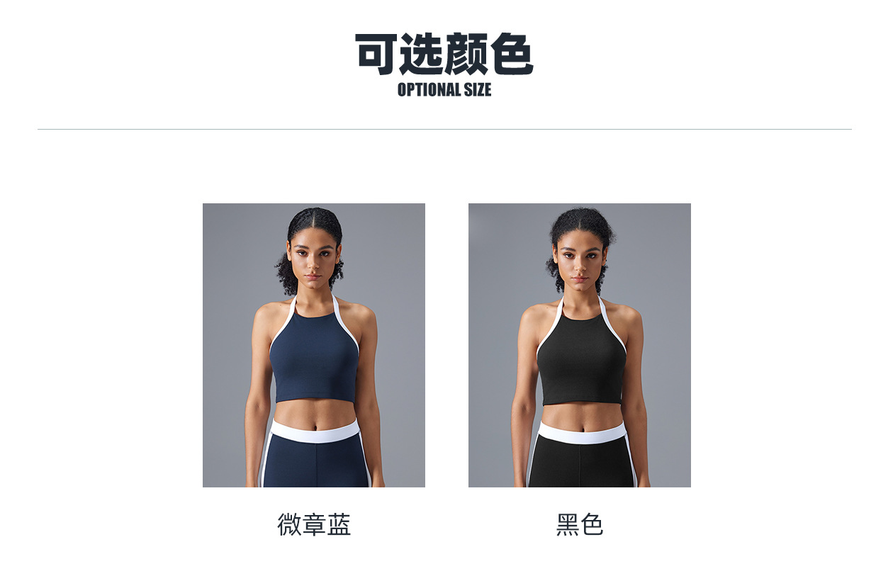 대비 색상 섹시한 홀터넥 아름다운 등 요가 브라 반 고정 컵 고강도 충격 방지 스포츠 브라 여성 D25091스토어 가기