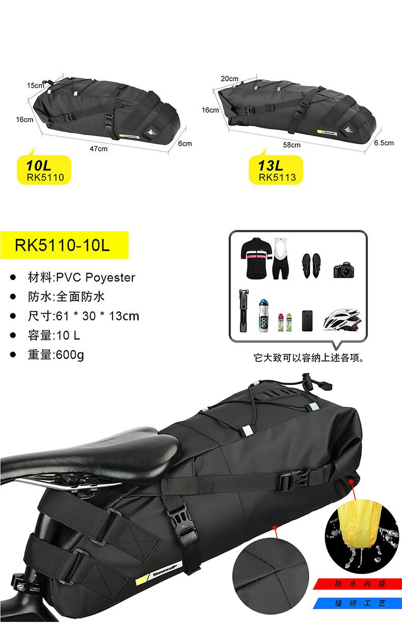 자전거 가방 산악 자전거 사이클링 자전거 도로 자전거 방수 테일 백 대용량 장거리 안장 퀵 릴리스 테일 백