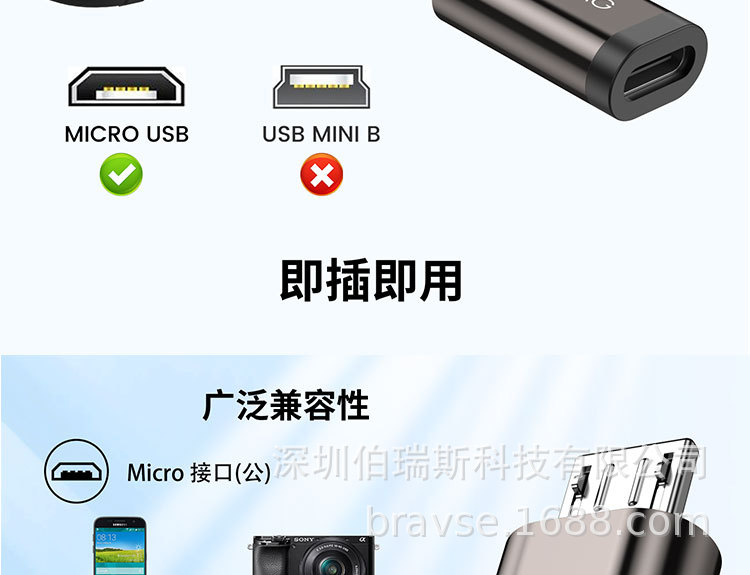 휴대폰 카메라 태블릿에 적합한 마이크로-타입 C 인터페이스 범용 커넥터 충전기 데이터 케이블 변환기스토어 가기