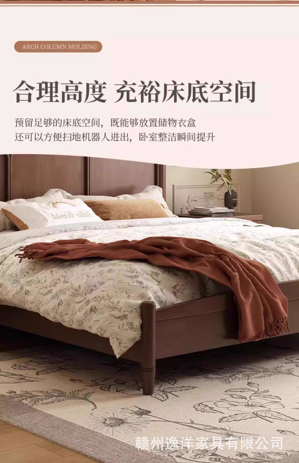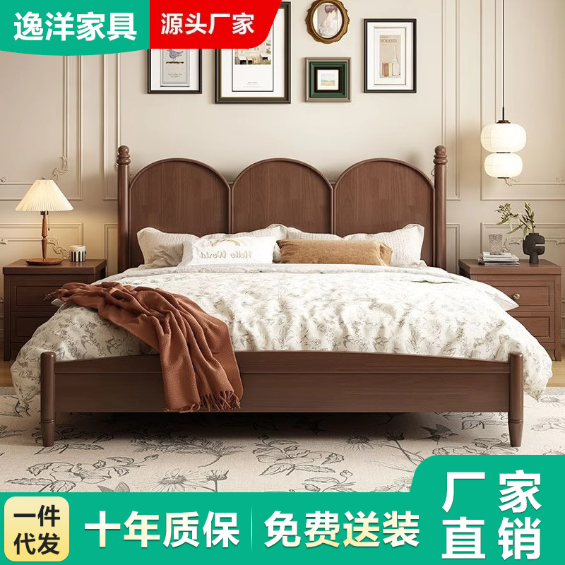 현대적인 미니멀리스트 프랑스 단단한 나무 침대 1.95m 더블 침대 중세 스타일 침대 미국 복고풍 작은 아파트 B & B 침대스토어 가기