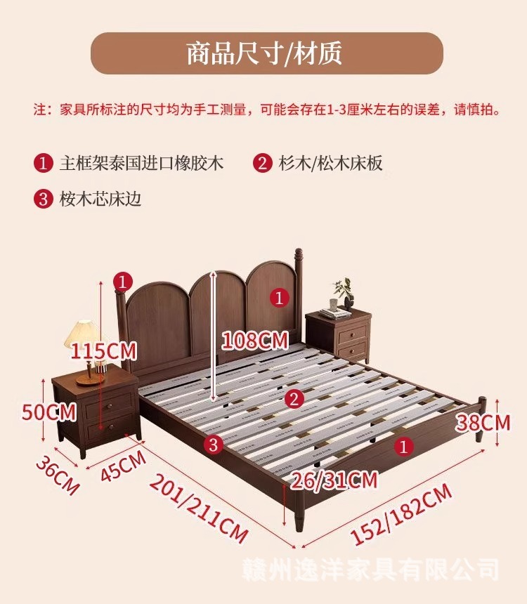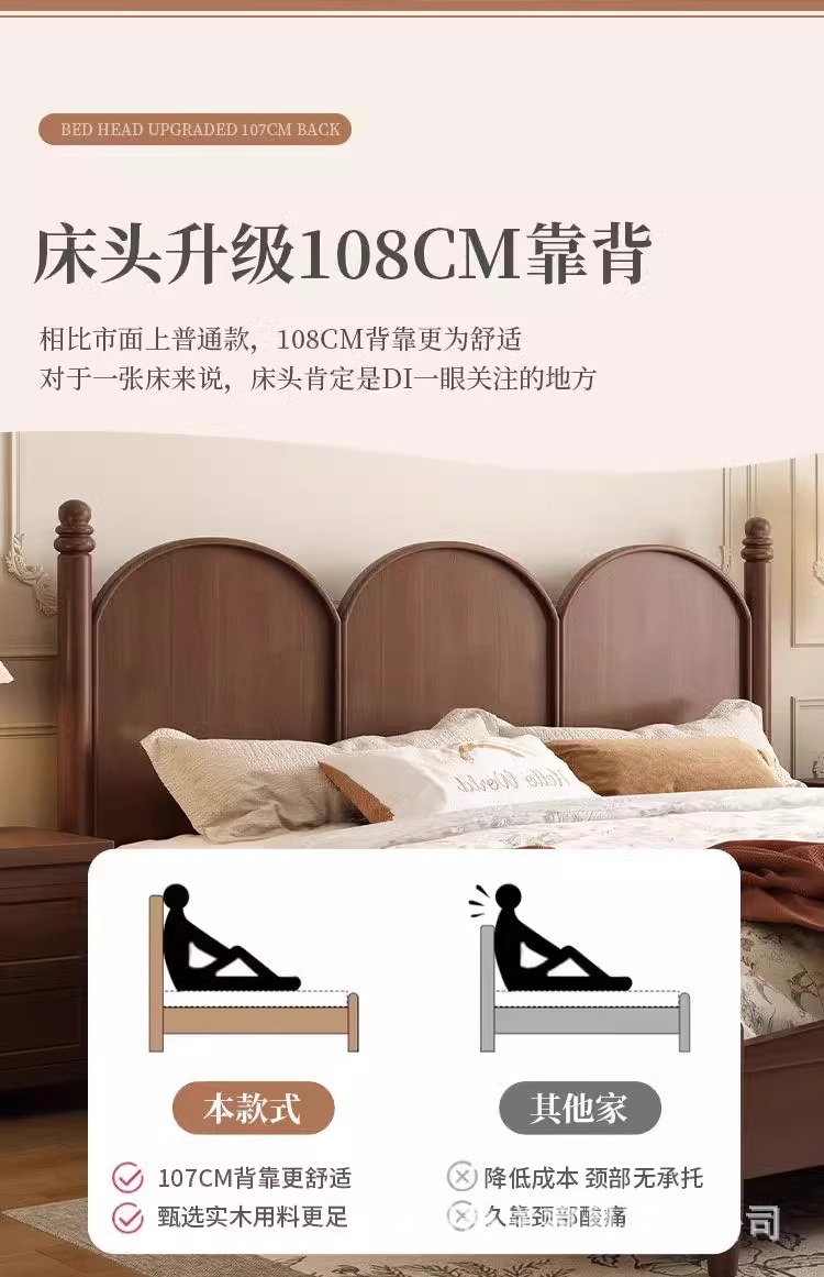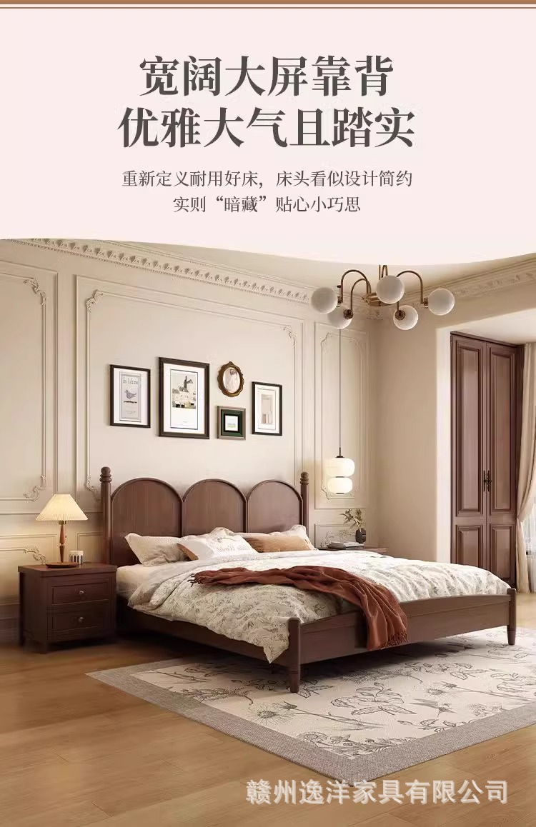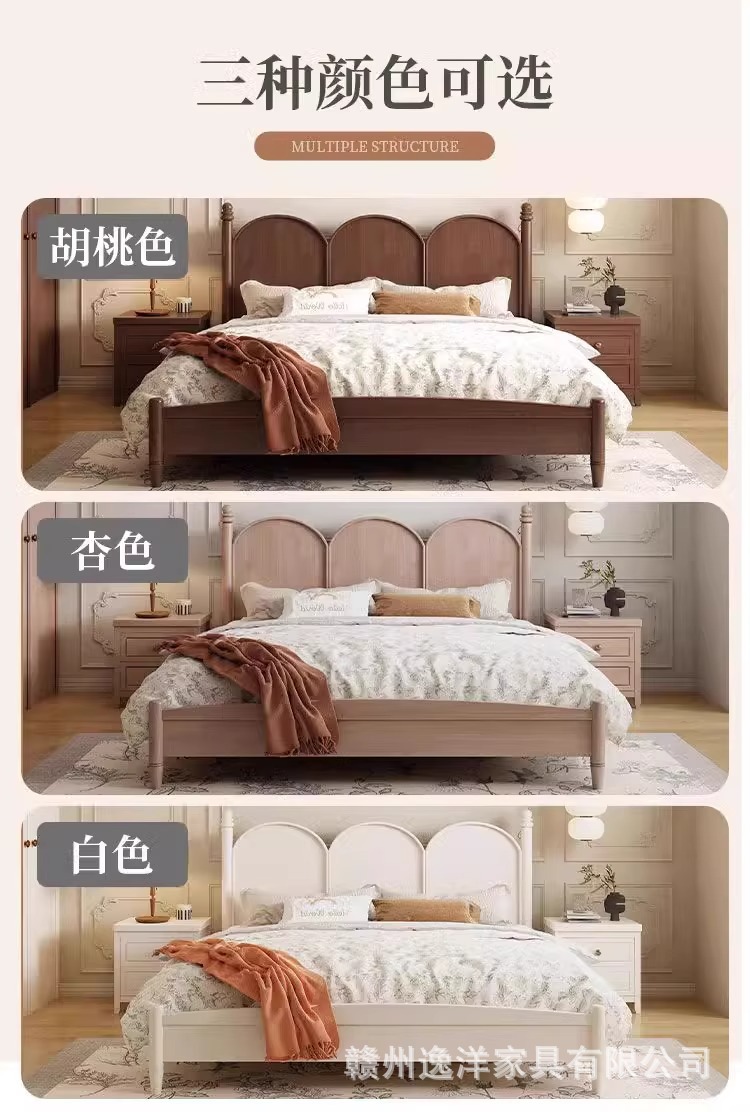 현대적인 미니멀리스트 프랑스 단단한 나무 침대 1.95m 더블 침대 중세 스타일 침대 미국 복고풍 작은 아파트 B & B 침대