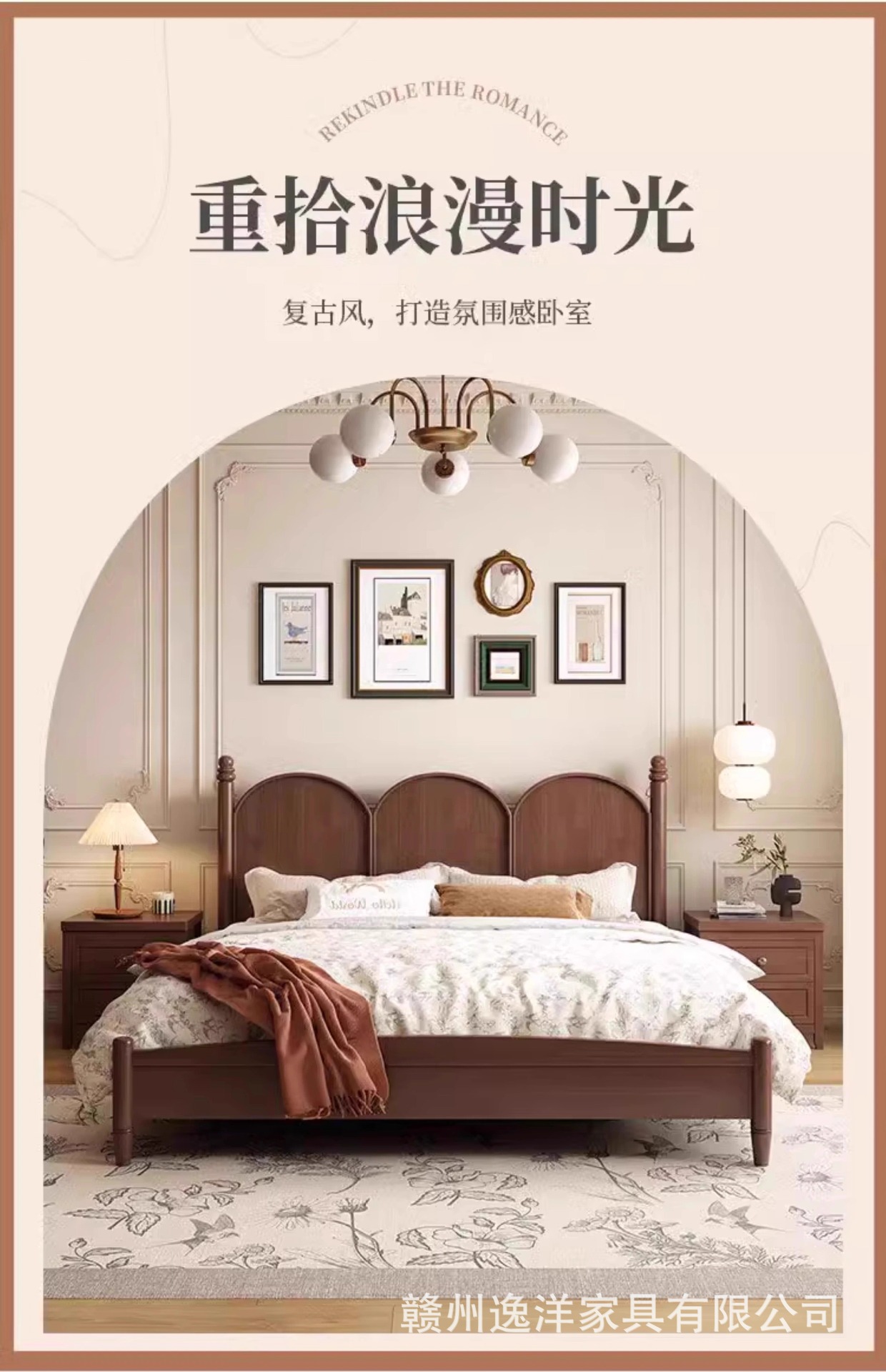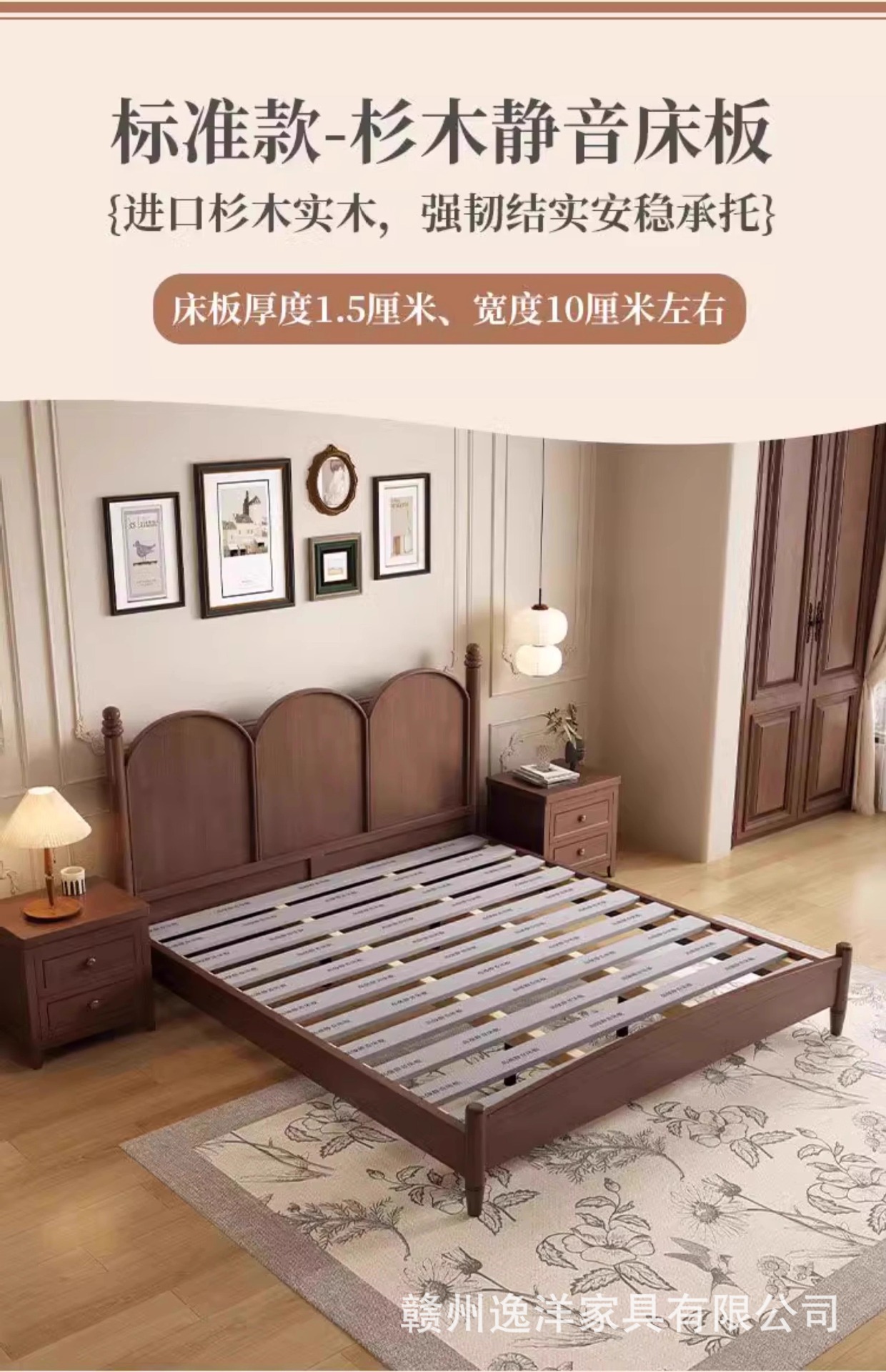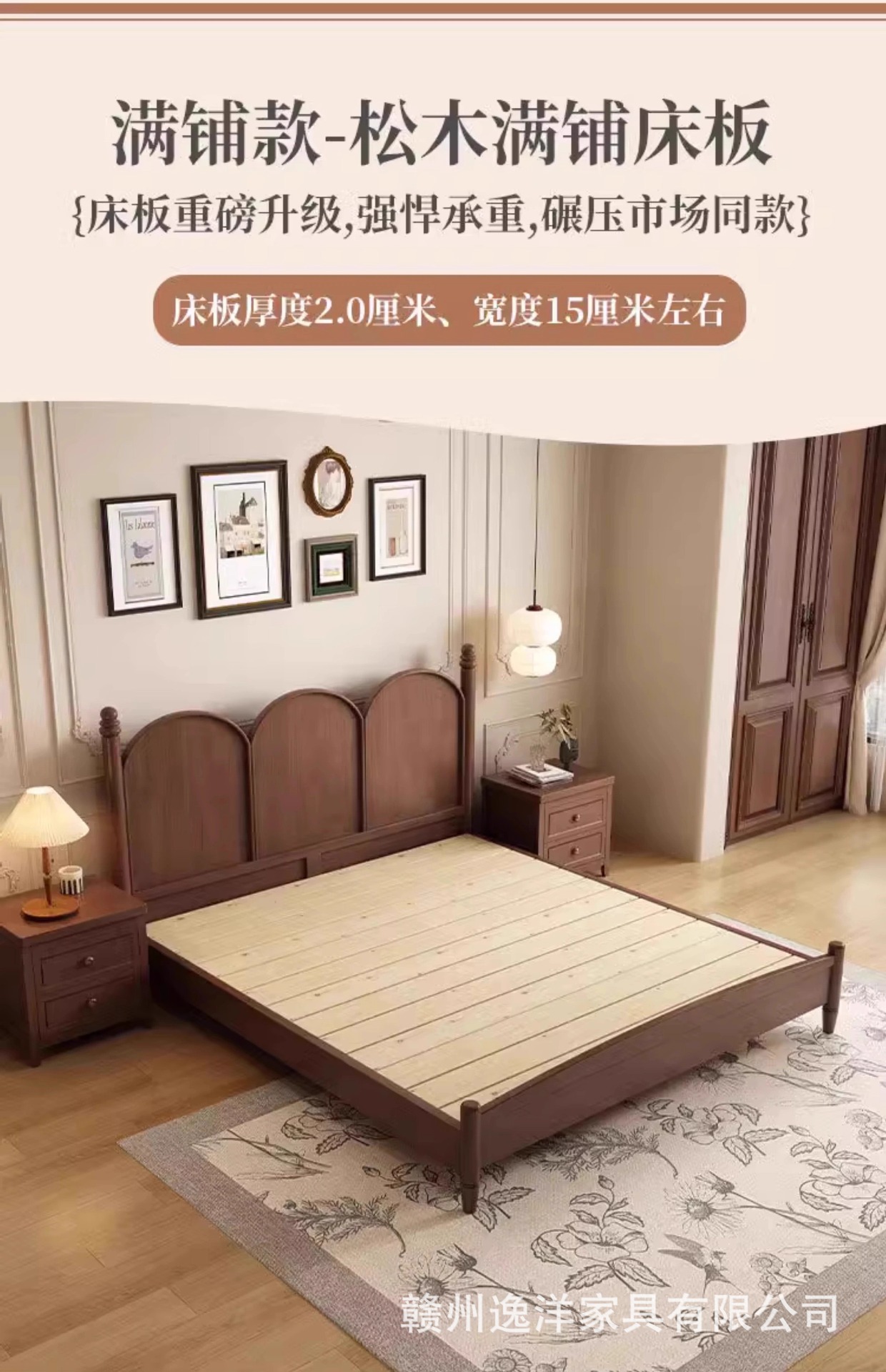 현대적인 미니멀리스트 프랑스 단단한 나무 침대 1.95m 더블 침대 중세 스타일 침대 미국 복고풍 작은 아파트 B & B 침대