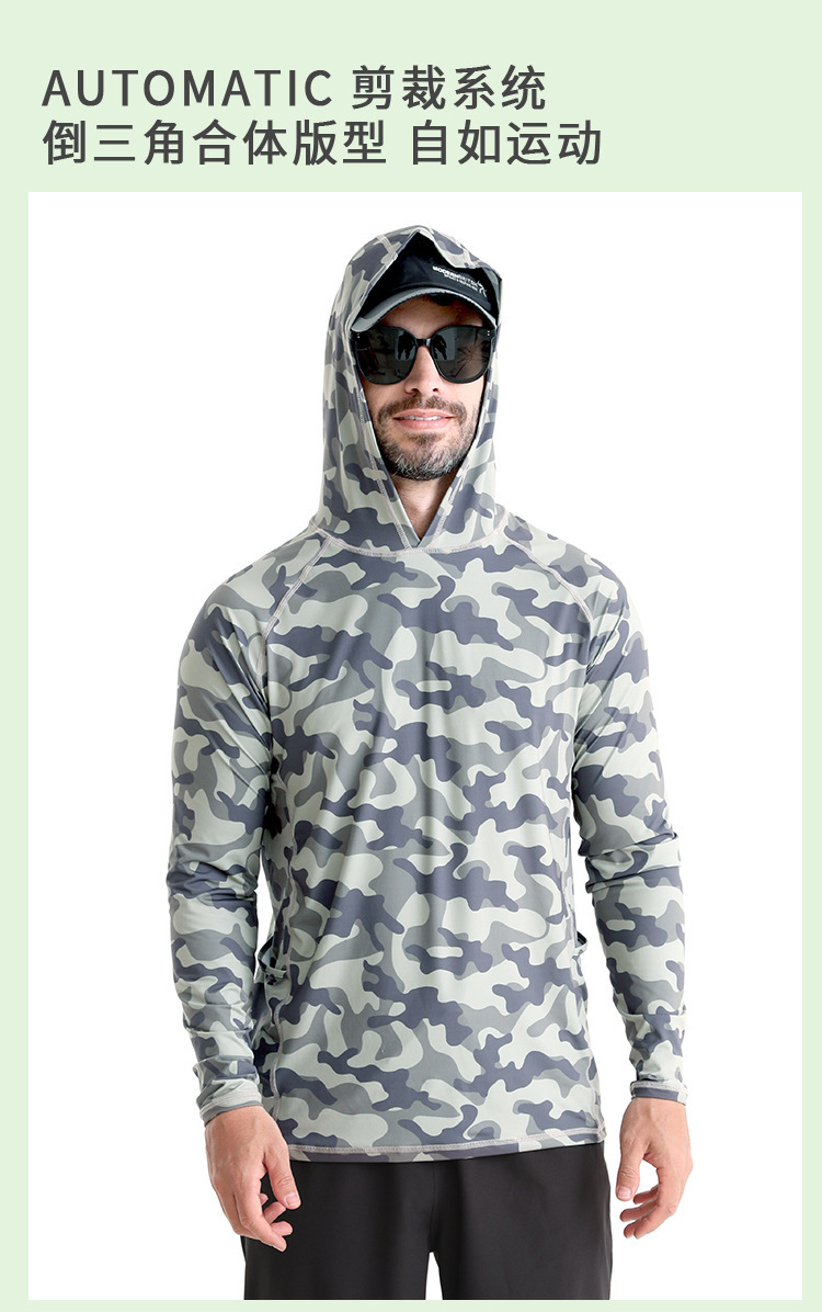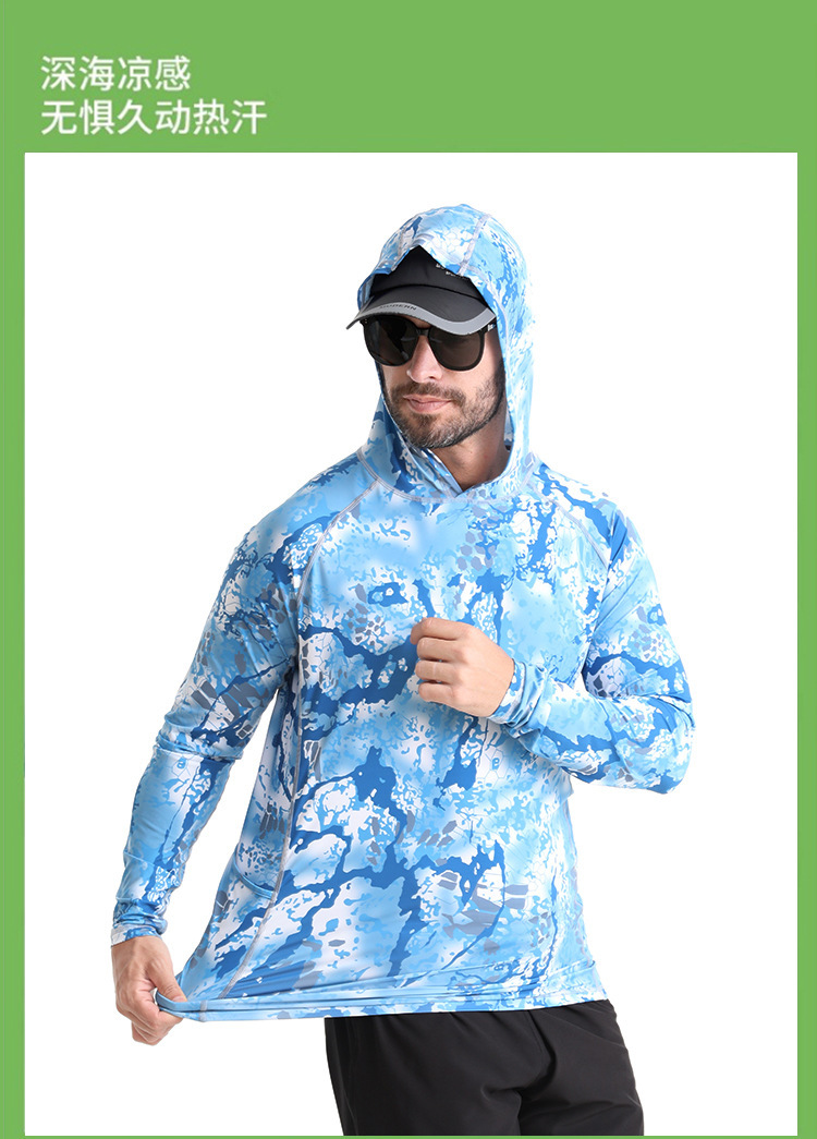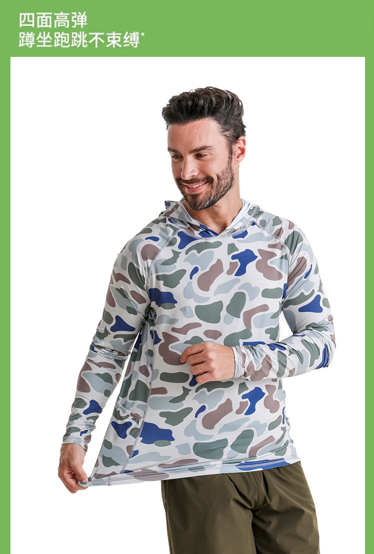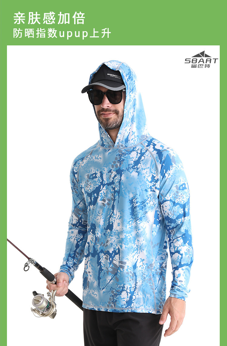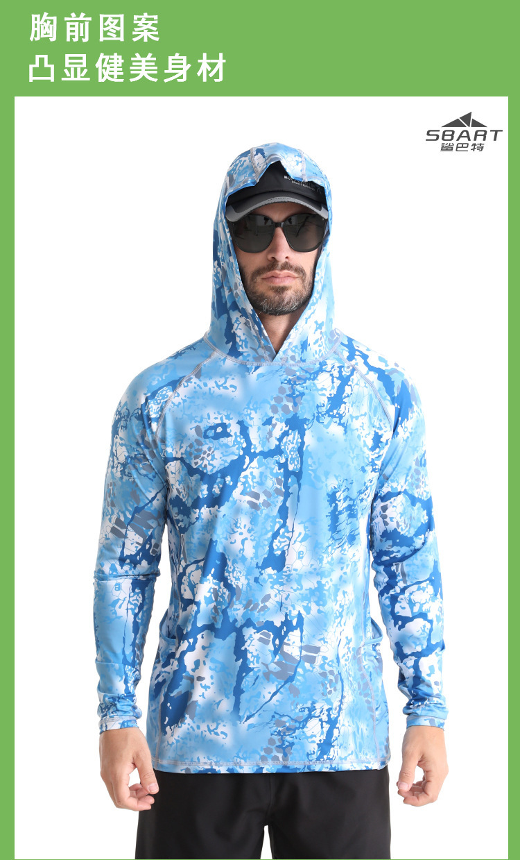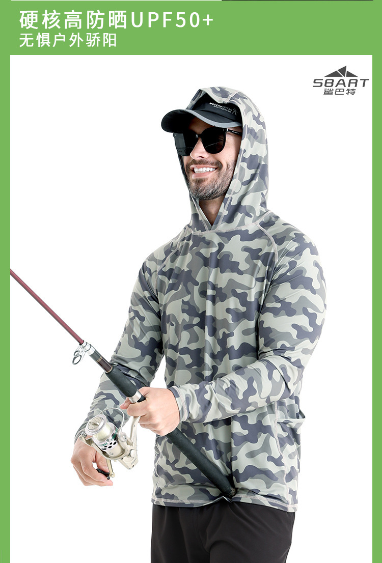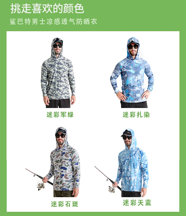 Sharkbart 후드 긴팔 자외선 차단제 쿨링 낚시 의류 자외선 방지 속건 스포츠 남성용 위장 낚시 의류스토어 가기