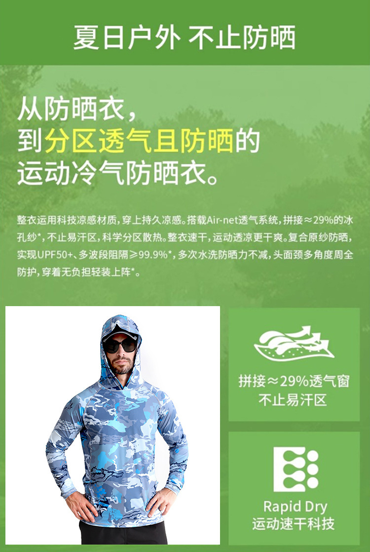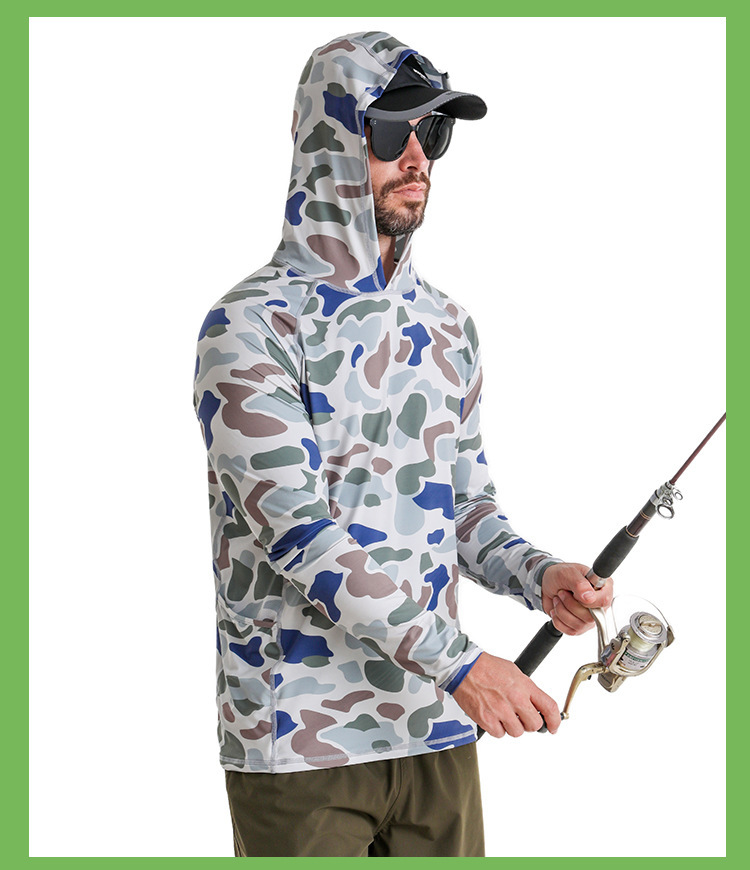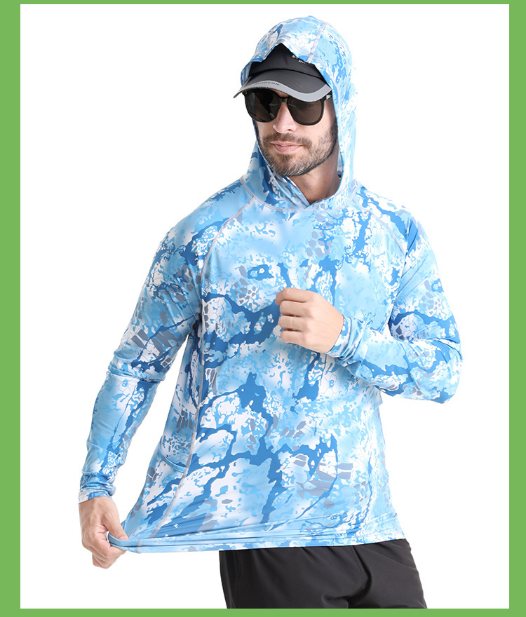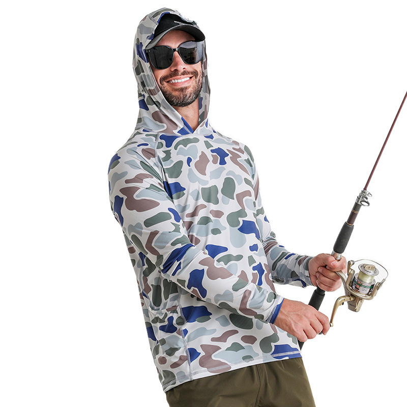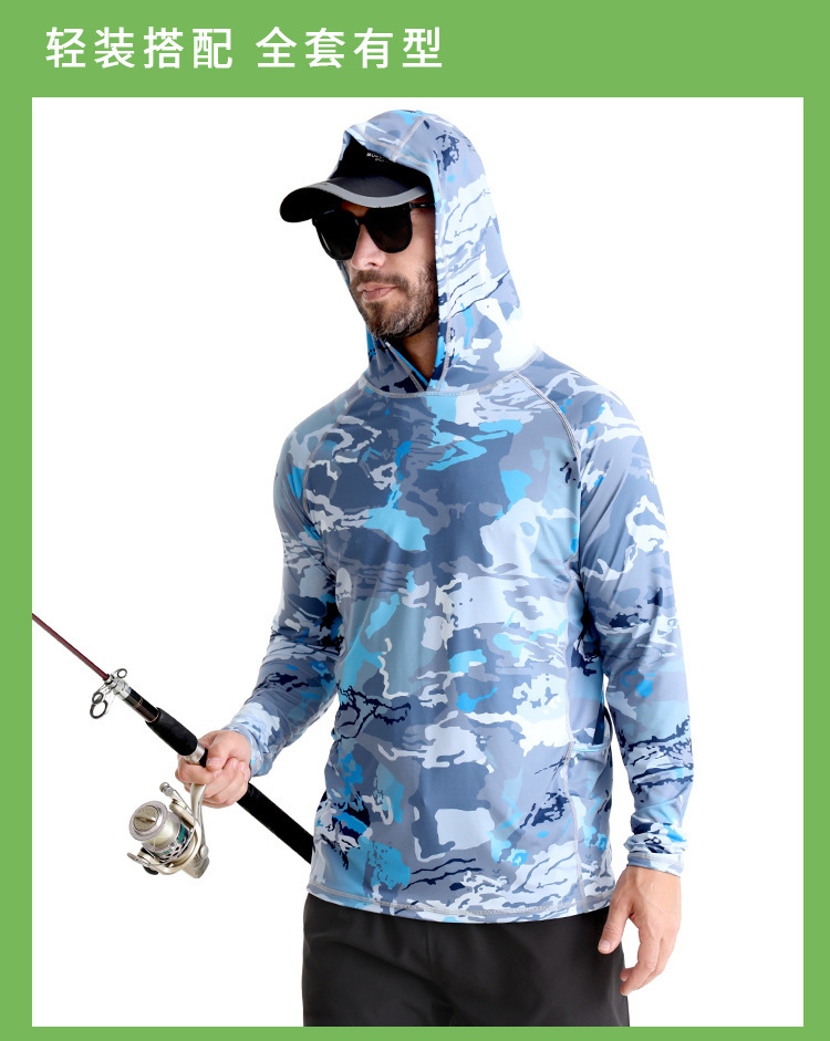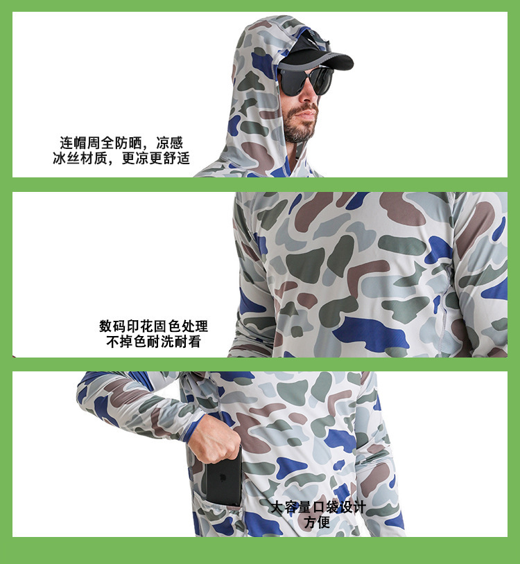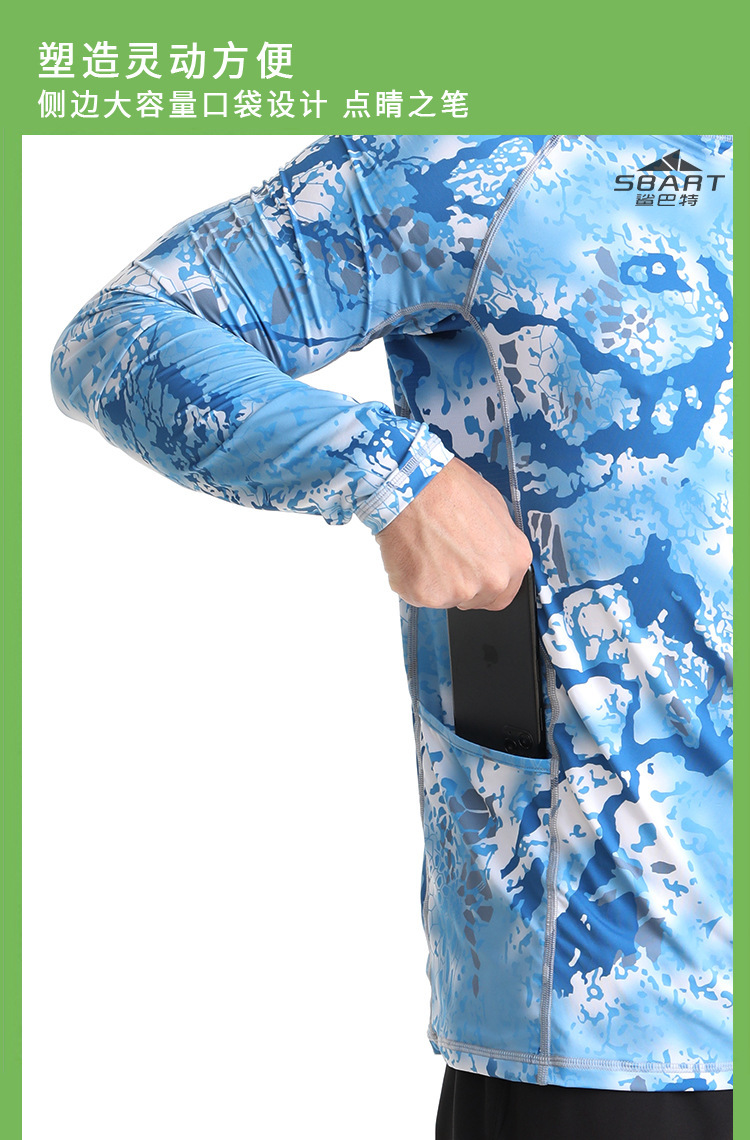 Sharkbart 후드 긴팔 자외선 차단제 쿨링 낚시 의류 자외선 방지 속건 스포츠 남성용 위장 낚시 의류스토어 가기