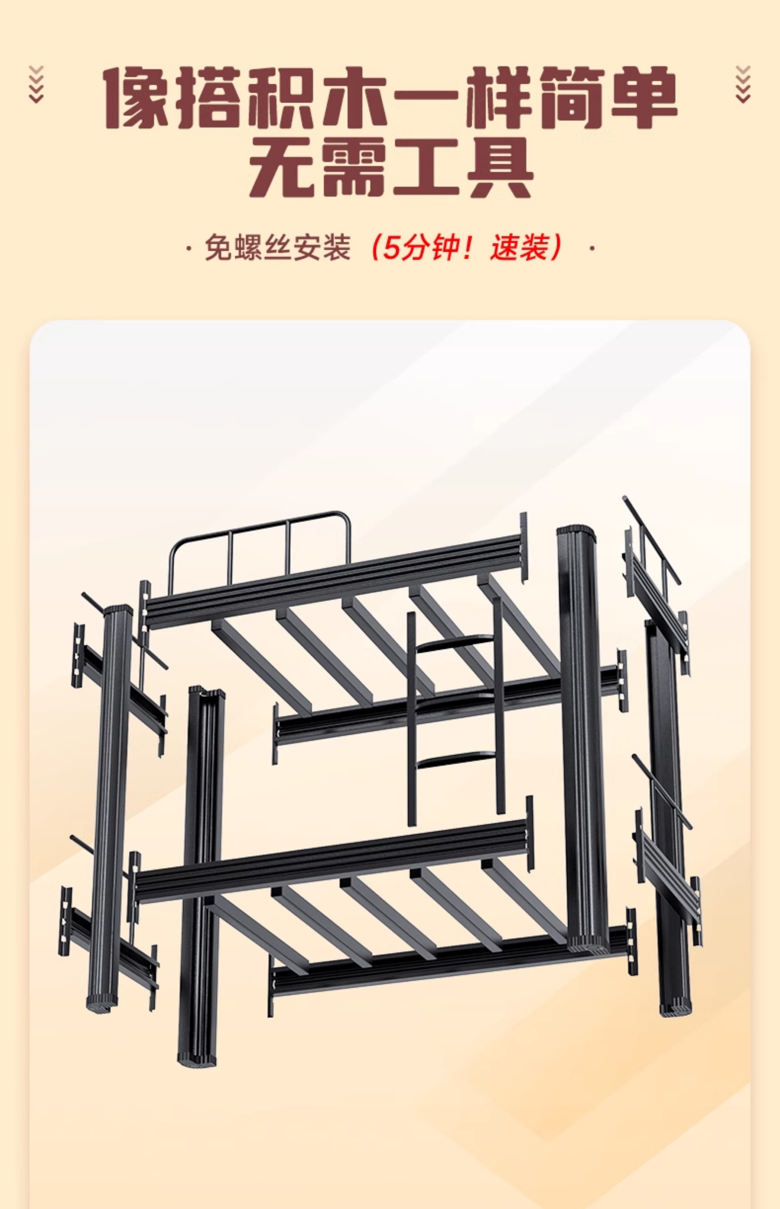 가정용 학생 기숙사용 두꺼운 이층 침대, 이층 철제 프레임 침대, 직원 기숙사 아파트용 높낮이 침대스토어 가기