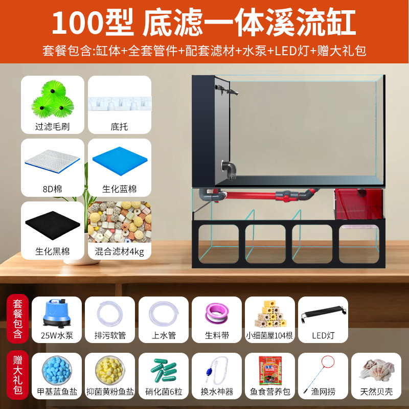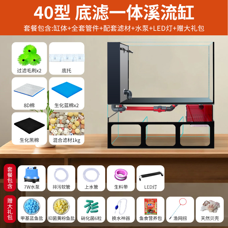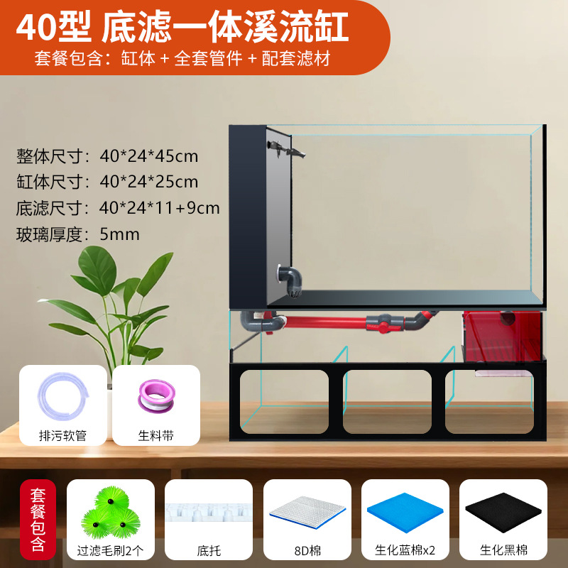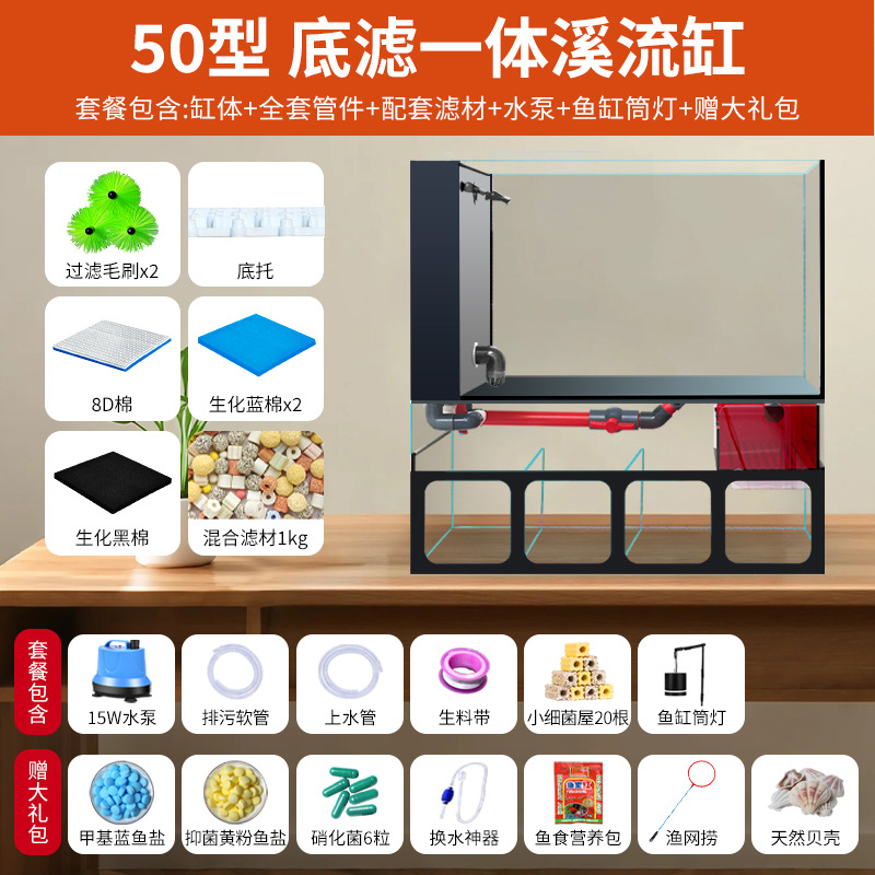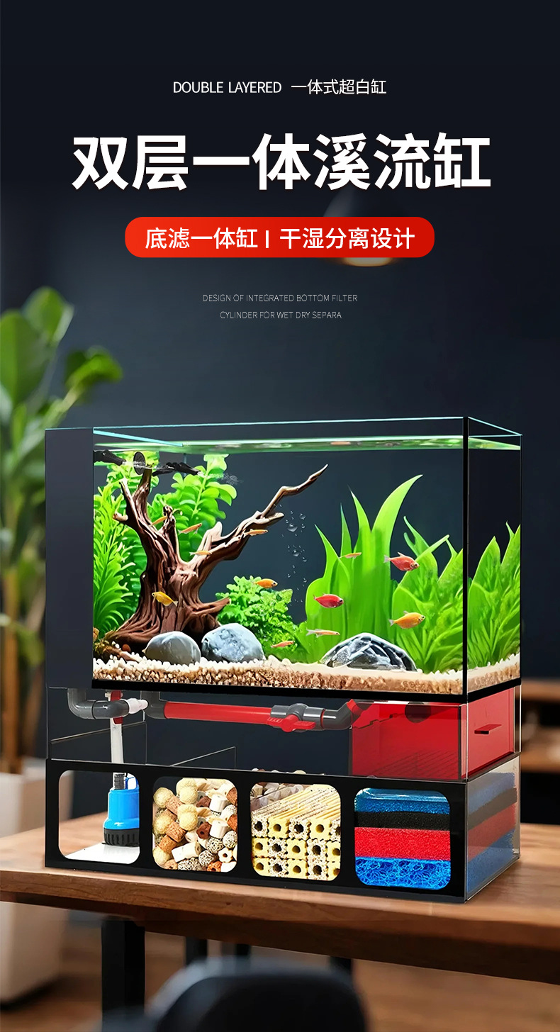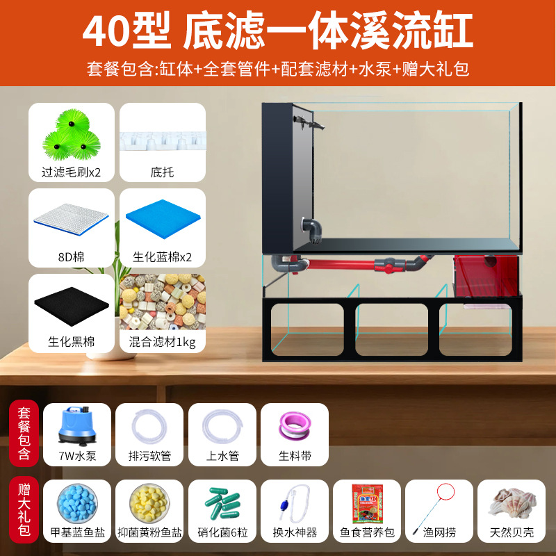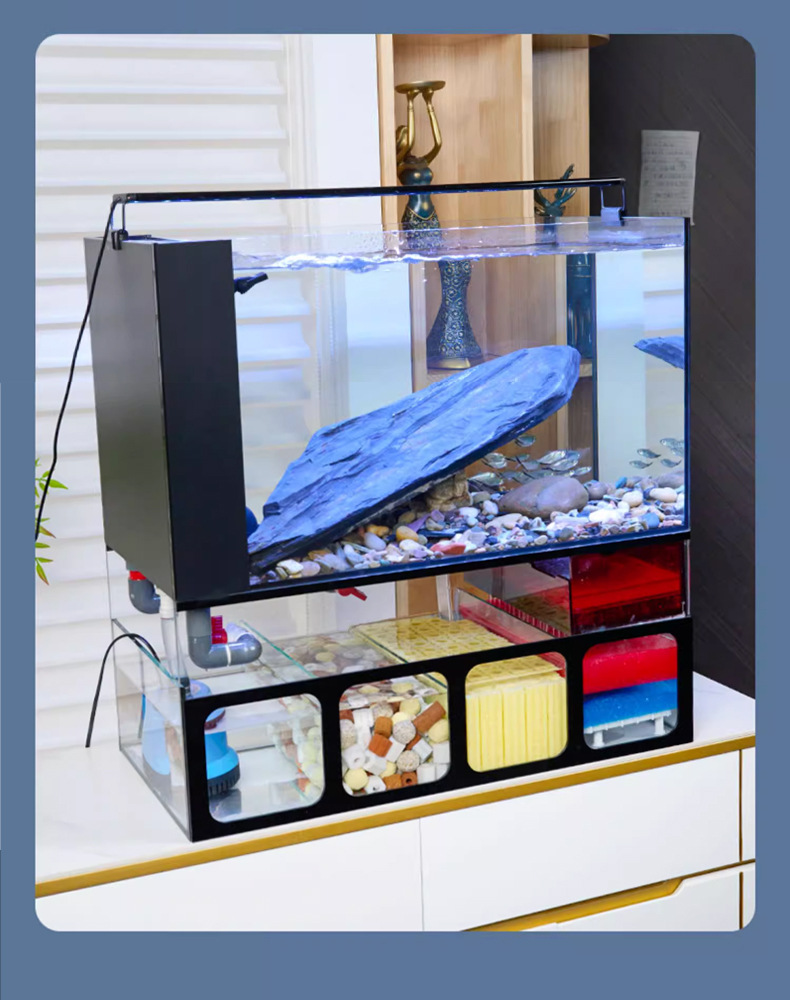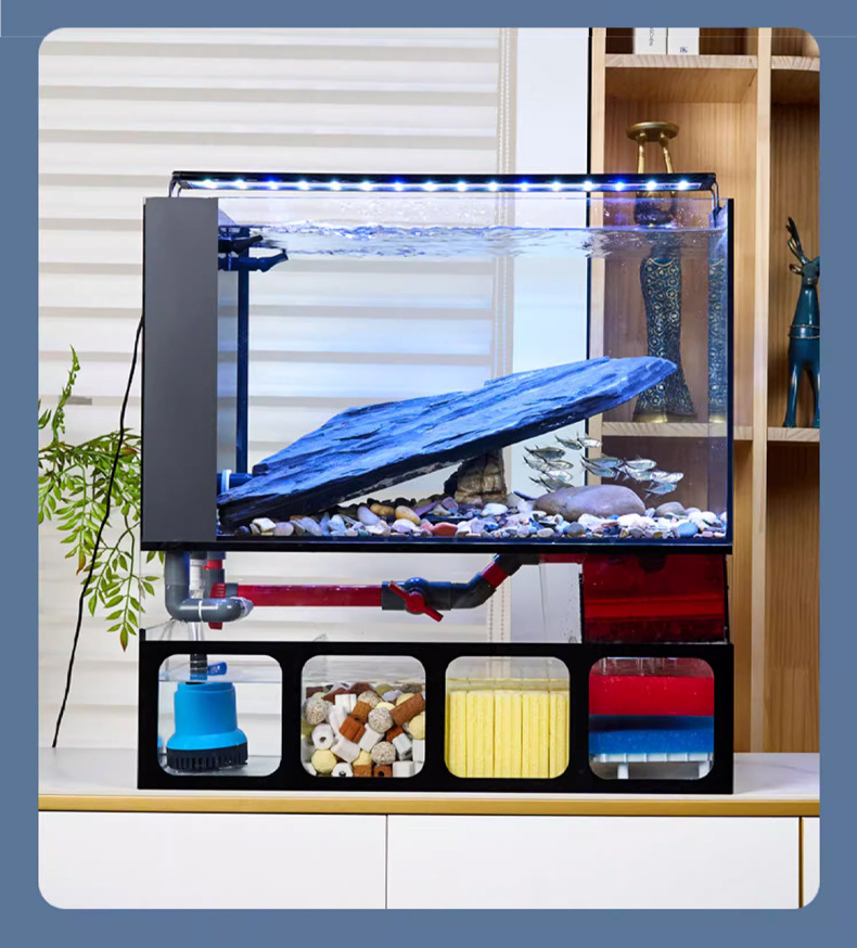필터가 있는 거실용 소형 어항, 금붕어 수조 바닥 필터 일체형 수족관, 데스크탑 소형 어항, 초백유리 거북이 수조