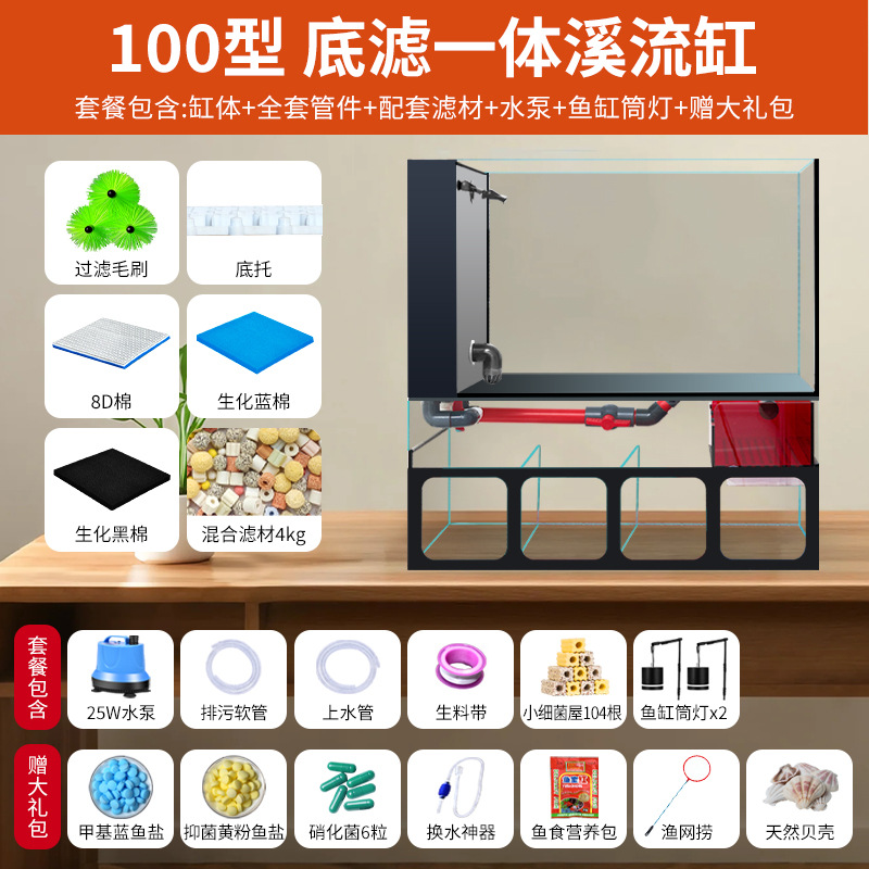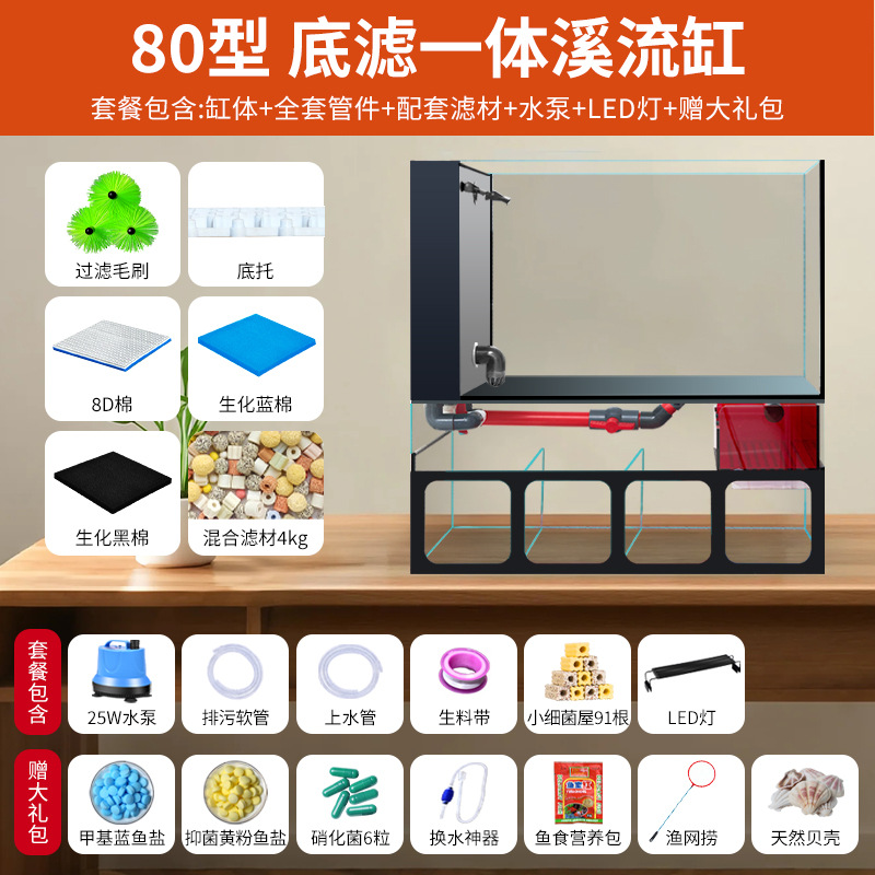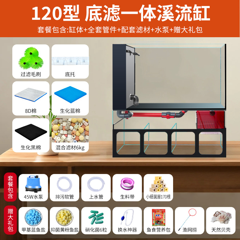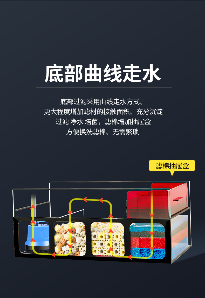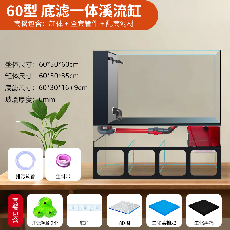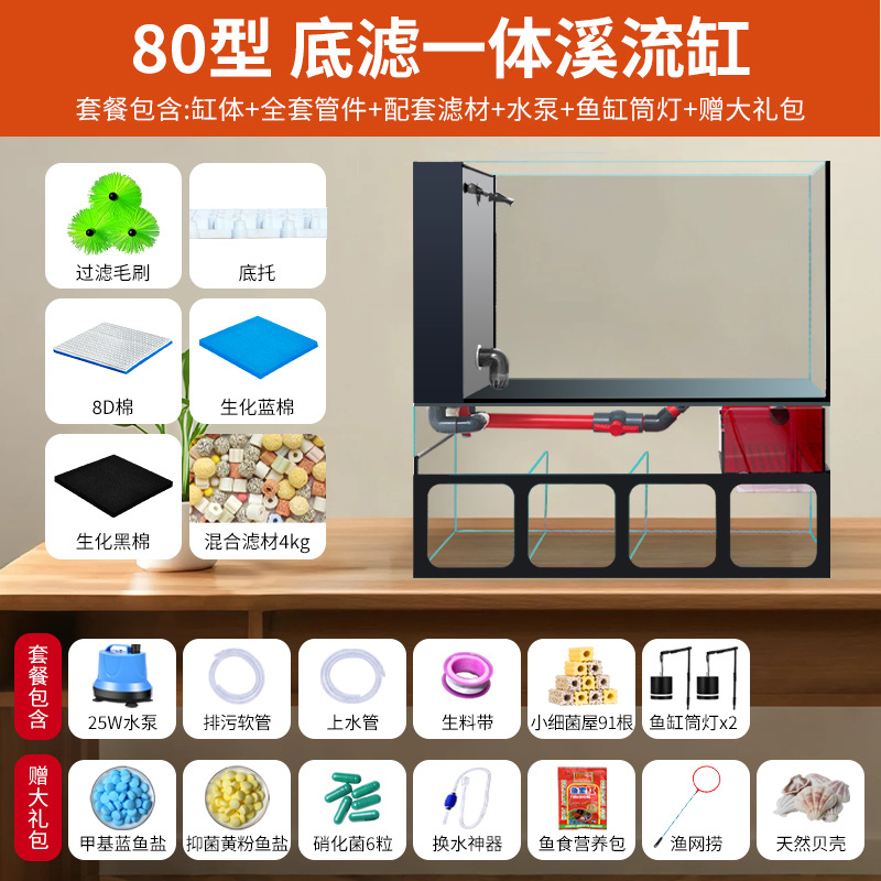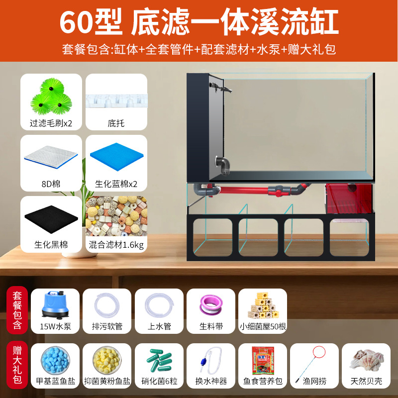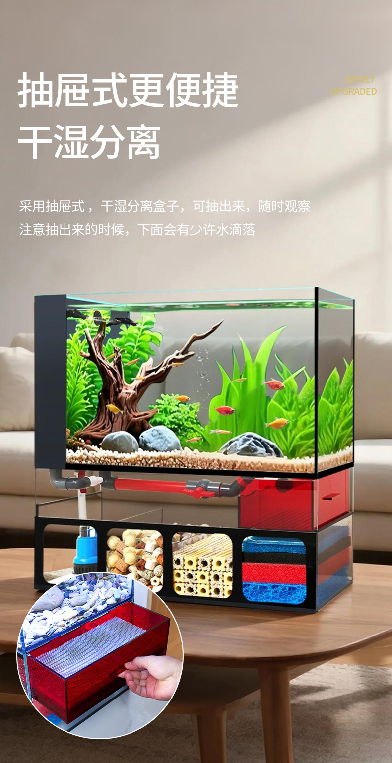 필터가 있는 거실용 소형 어항, 금붕어 수조 바닥 필터 일체형 수족관, 데스크탑 소형 어항, 초백유리 거북이 수조