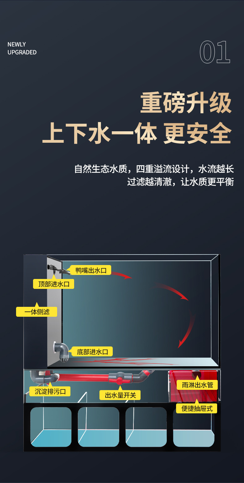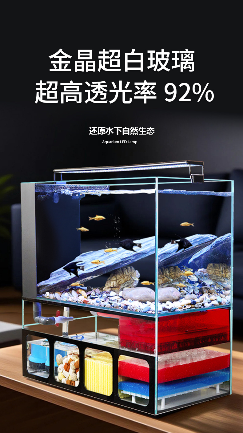 필터가 있는 거실용 소형 어항, 금붕어 수조 바닥 필터 일체형 수족관, 데스크탑 소형 어항, 초백유리 거북이 수조스토어 가기