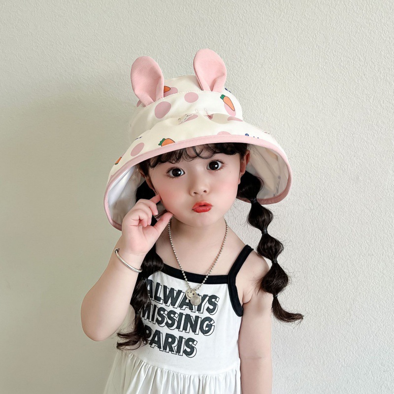 • 어린이 토끼 무늬 빈 모자--핑크색