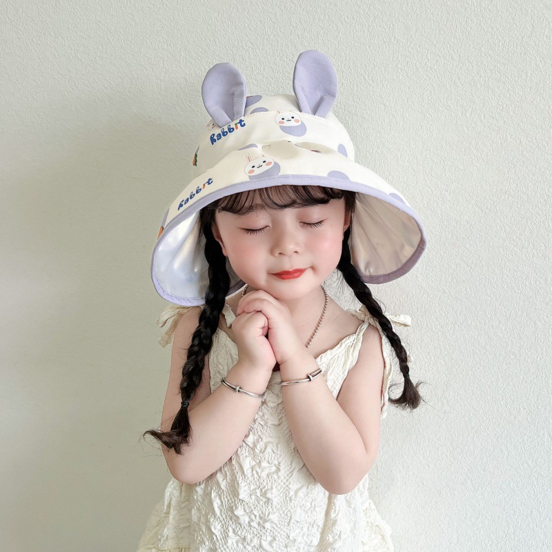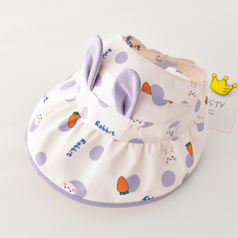 • 어린이 토끼 무늬 빈 모자--보라색