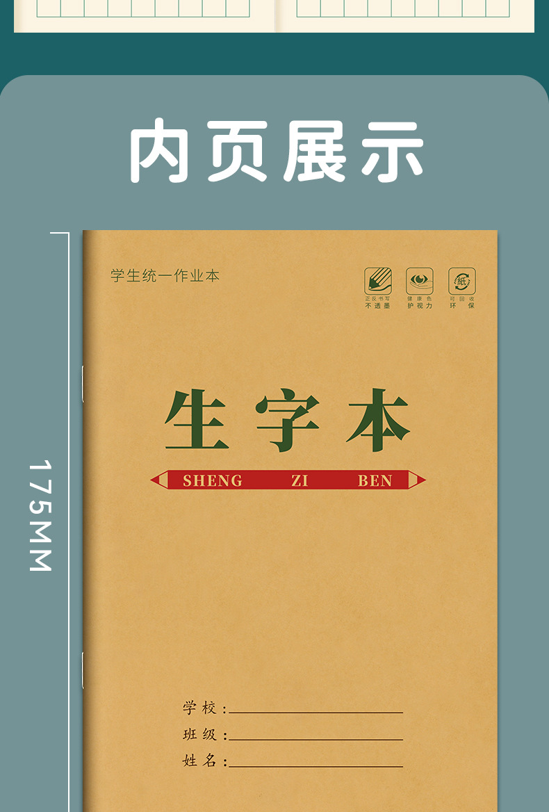 병음책, 그리드 그리드 신단어책, 크래프트지 숙제책, 두꺼운 초등학생 도매노트