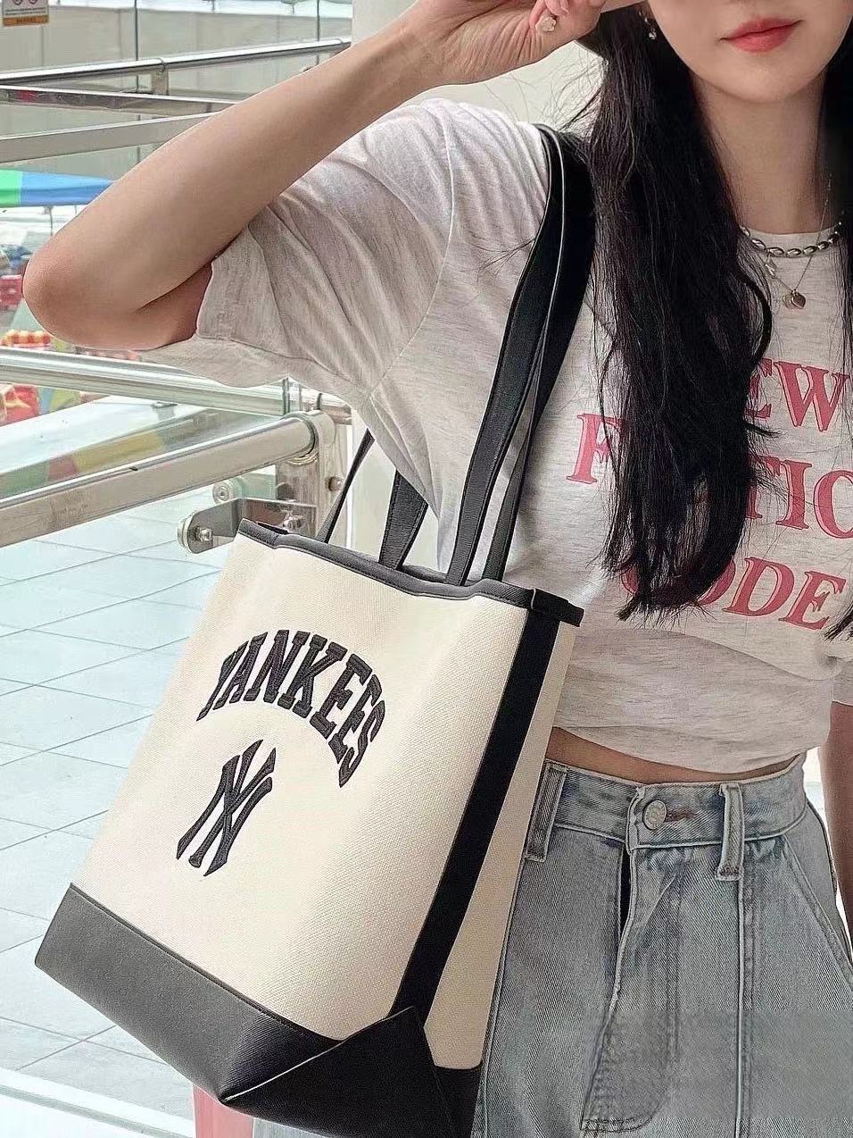 새로운 한국 MLB 토트 백 NY 자수 패션 숄더 크로스 바디 핸드백 대학 작업 통근 인터넷 연예인 스타일스토어 가기