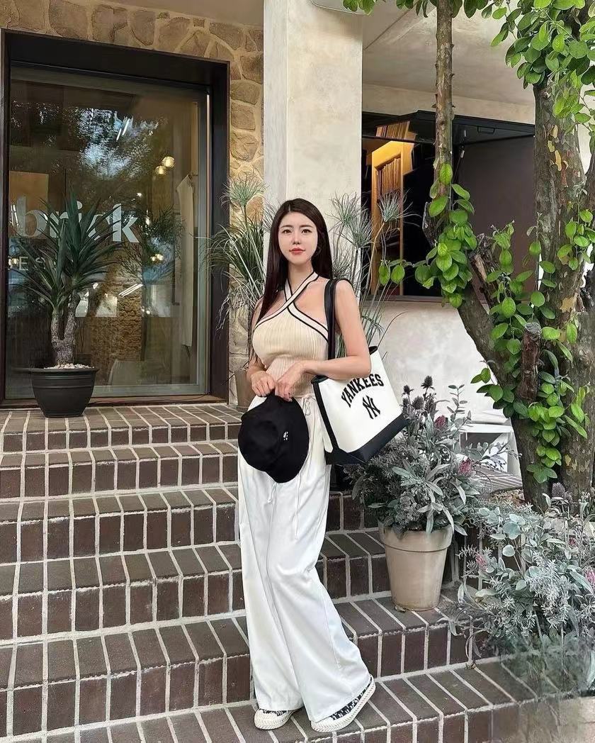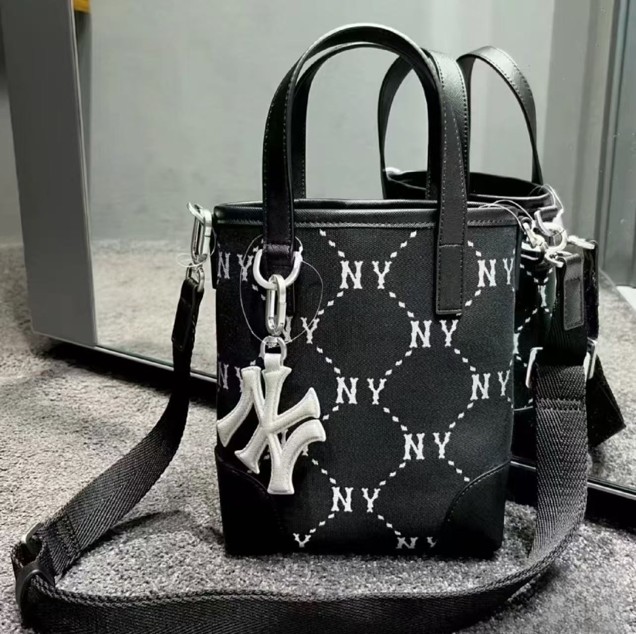 새로운 한국 MLB 토트 백 NY 자수 패션 숄더 크로스 바디 핸드백 대학 작업 통근 인터넷 연예인 스타일