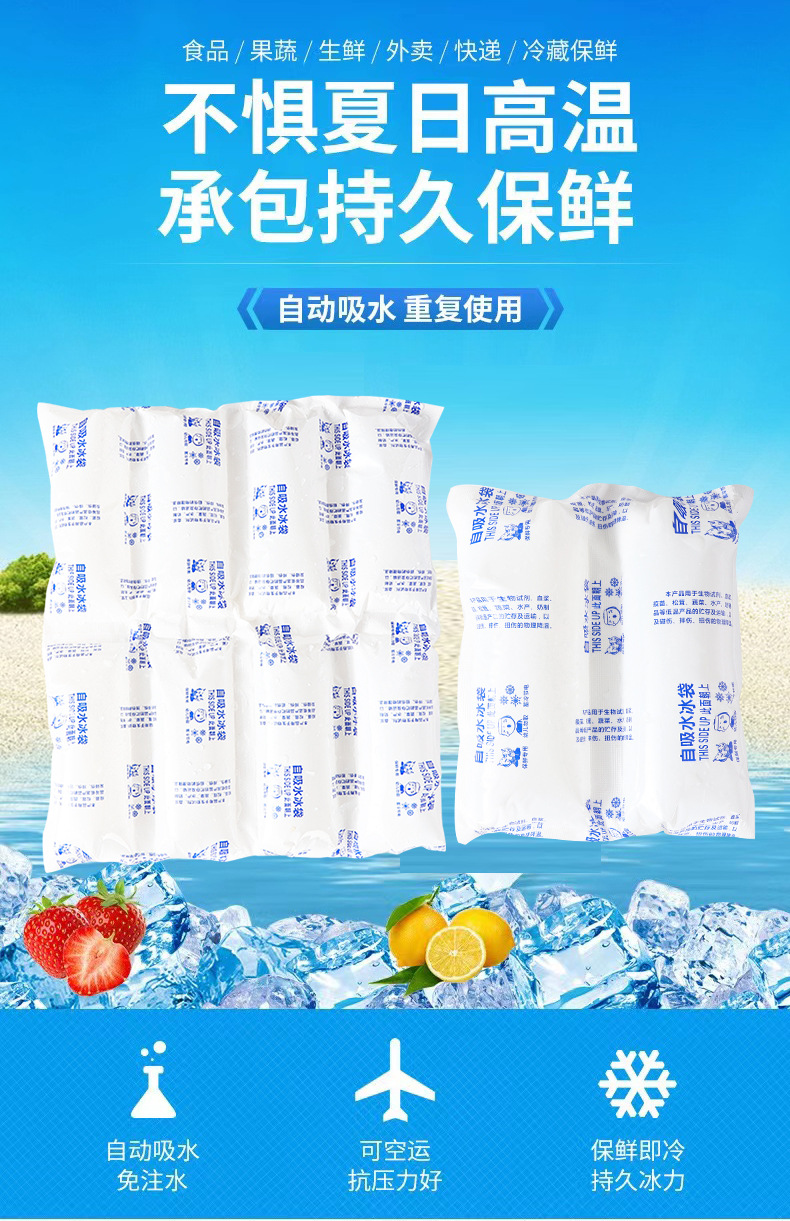 긴 격자 무늬 아이스 백, 자체 흡수성, 재사용 가능한 젤 냉장 및 신선 유지 식품 등급 특급 아이스 백