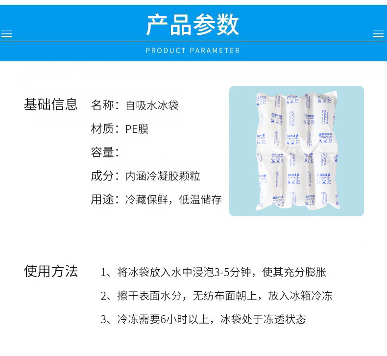 긴 격자 무늬 아이스 백, 자체 흡수성, 재사용 가능한 젤 냉장 및 신선 유지 식품 등급 특급 아이스 백스토어 가기