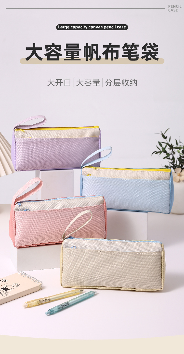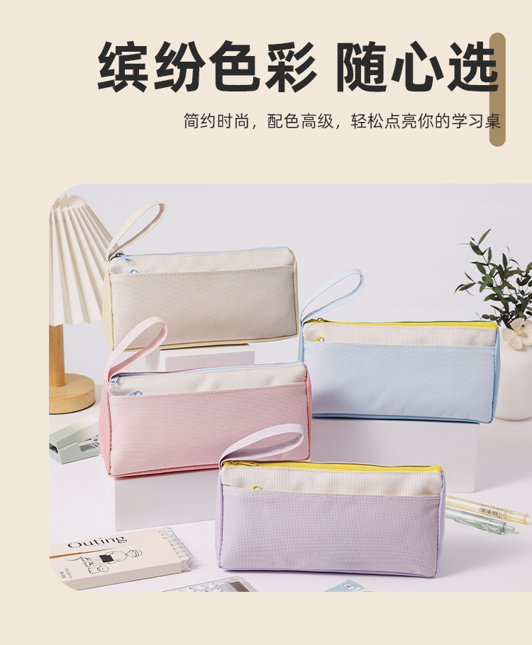 고급스러운 600D 옥스포드 천 문구 도매를 갖춘 온라인 무료 맞춤형 연필 가방 로고 더블 레이어 대용량 필통스토어 가기