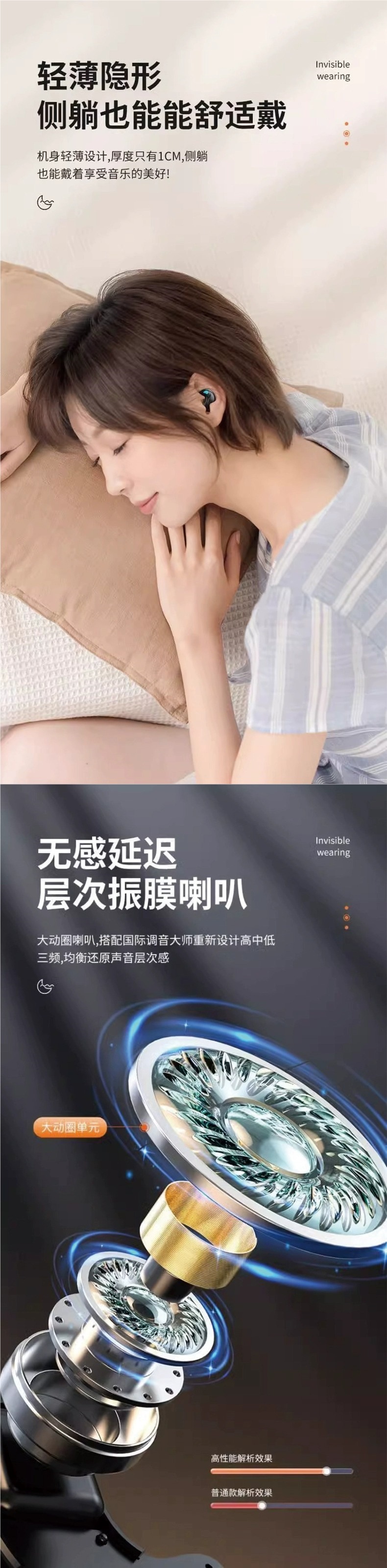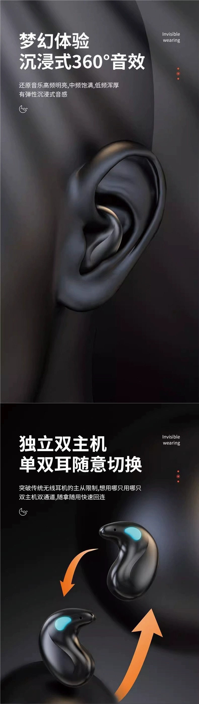 • 상위 버전, 피부 친화적 [얇고 가벼운 귀에 밀착 + 옆으로 누워도 착용 가능 + 히스틴 음향 효과]