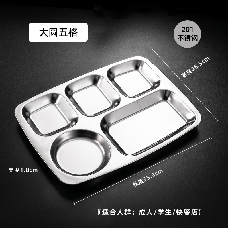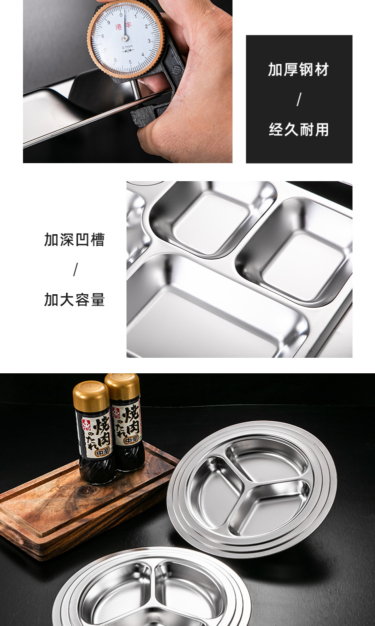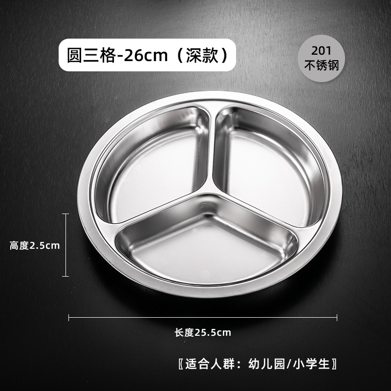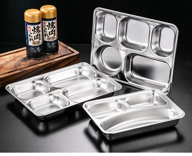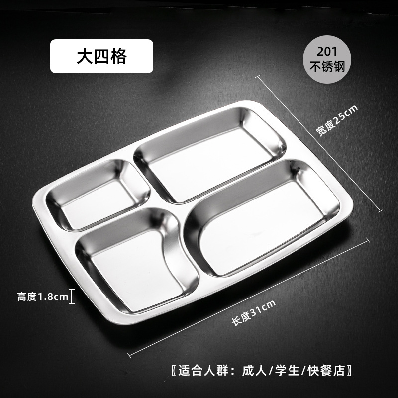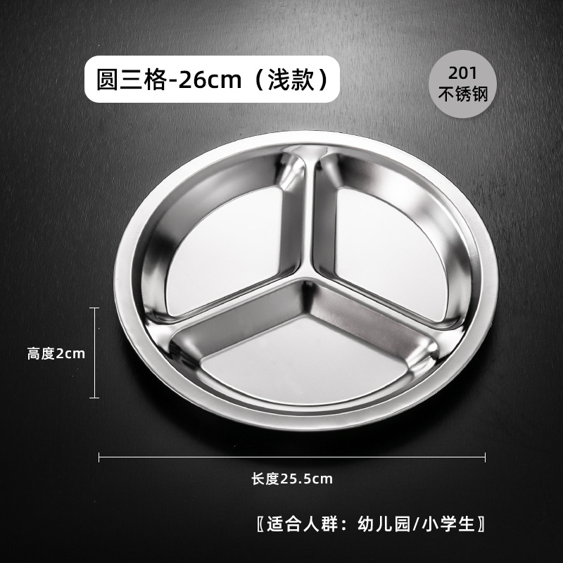 식당 식기 패스트 푸드 접시 스테인레스 스틸 304 디너 접시 성인 디너 접시 3 칸 4 칸 둥근 디너 접시 두꺼운스토어 가기