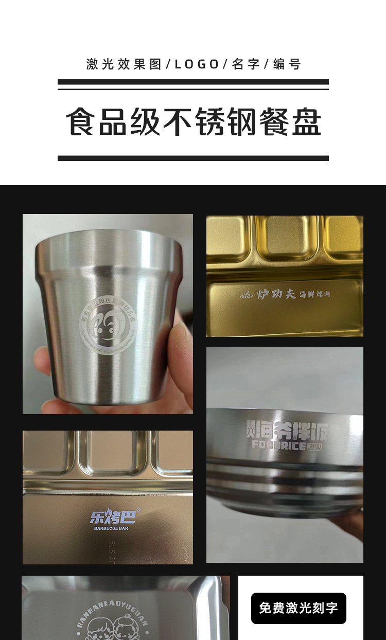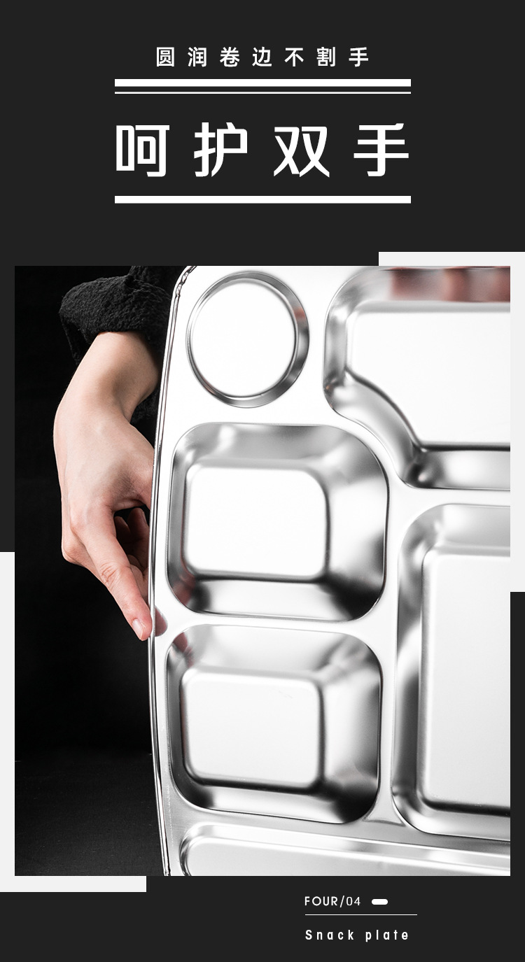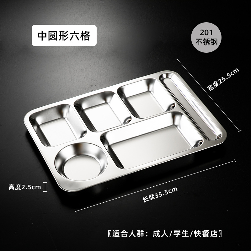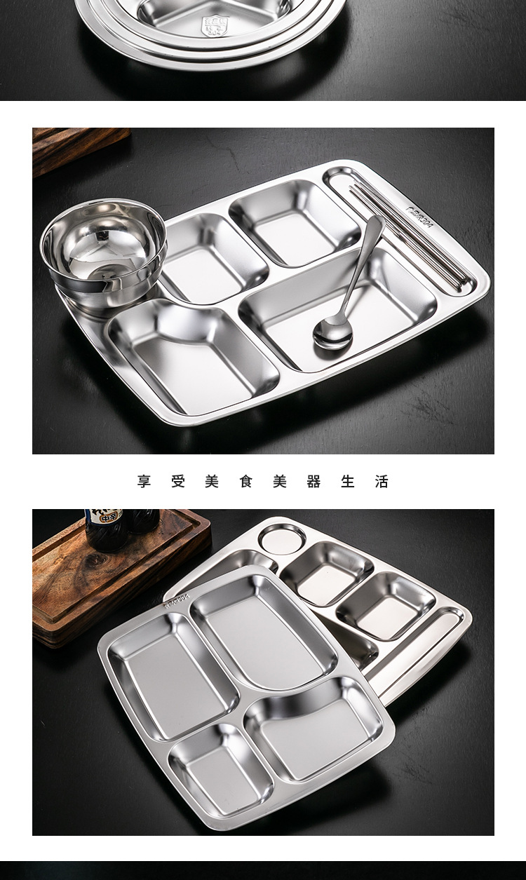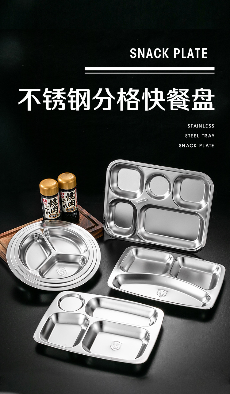 식당 식기 패스트 푸드 접시 스테인레스 스틸 304 디너 접시 성인 디너 접시 3 칸 4 칸 둥근 디너 접시 두꺼운스토어 가기