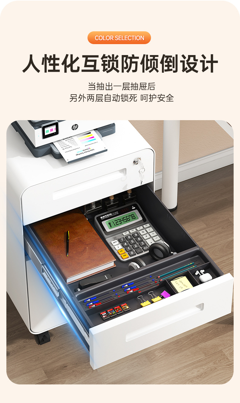 • 측면 당김 3단 서랍 화이트 - 국가 보안 비밀번호 잠금장치 (완제품, 배송 및 설치 포함)