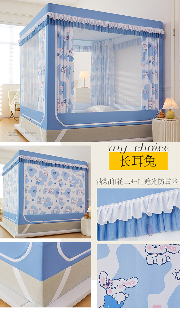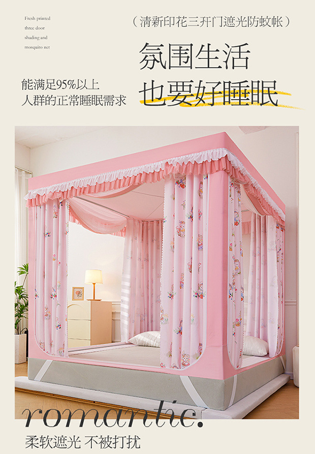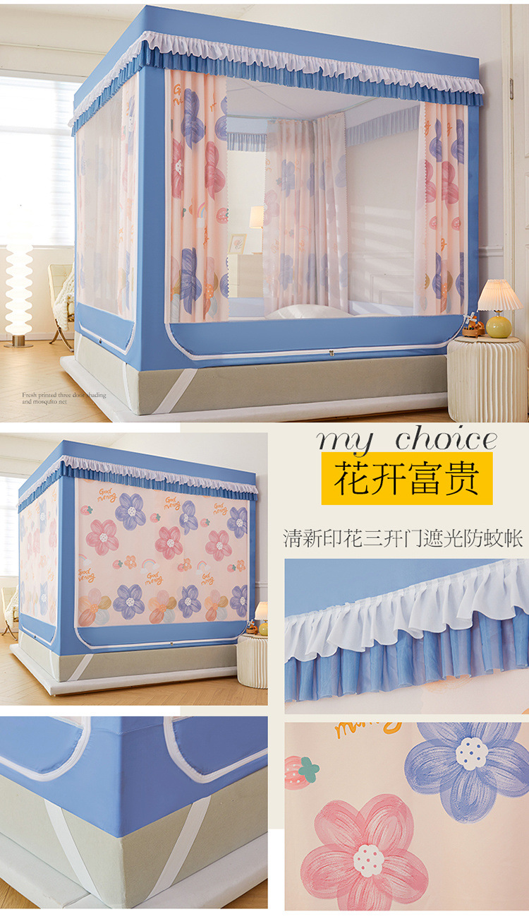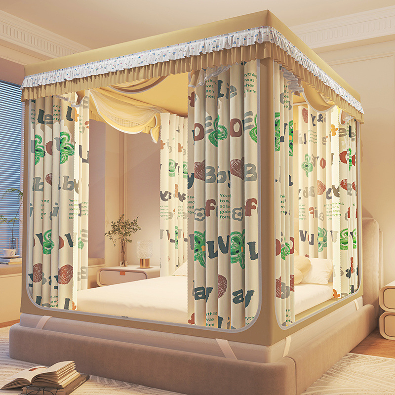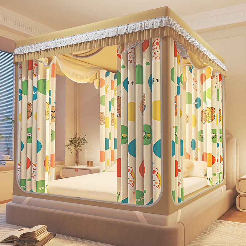 가정용 차광 침대 커튼 일체형 어린이 모기장 지퍼 3 도어 낙하 방지 완전 밀폐형 1.8 침대 커튼 방진스토어 가기