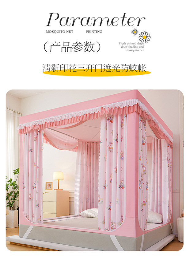 가정용 차광 침대 커튼 일체형 어린이 모기장 지퍼 3 도어 낙하 방지 완전 밀폐형 1.8 침대 커튼 방진