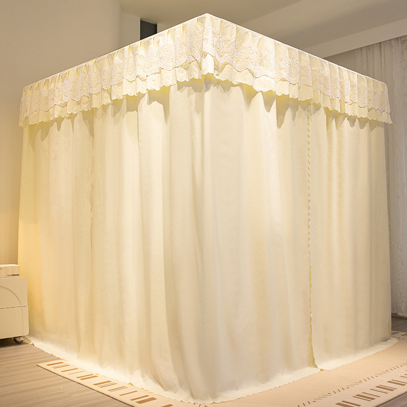 공주 스타일 침대 커튼 가정용 침실 방풍 밀폐형 차광 두꺼운 침대 커튼 3 도어 모기장 침구스토어 가기