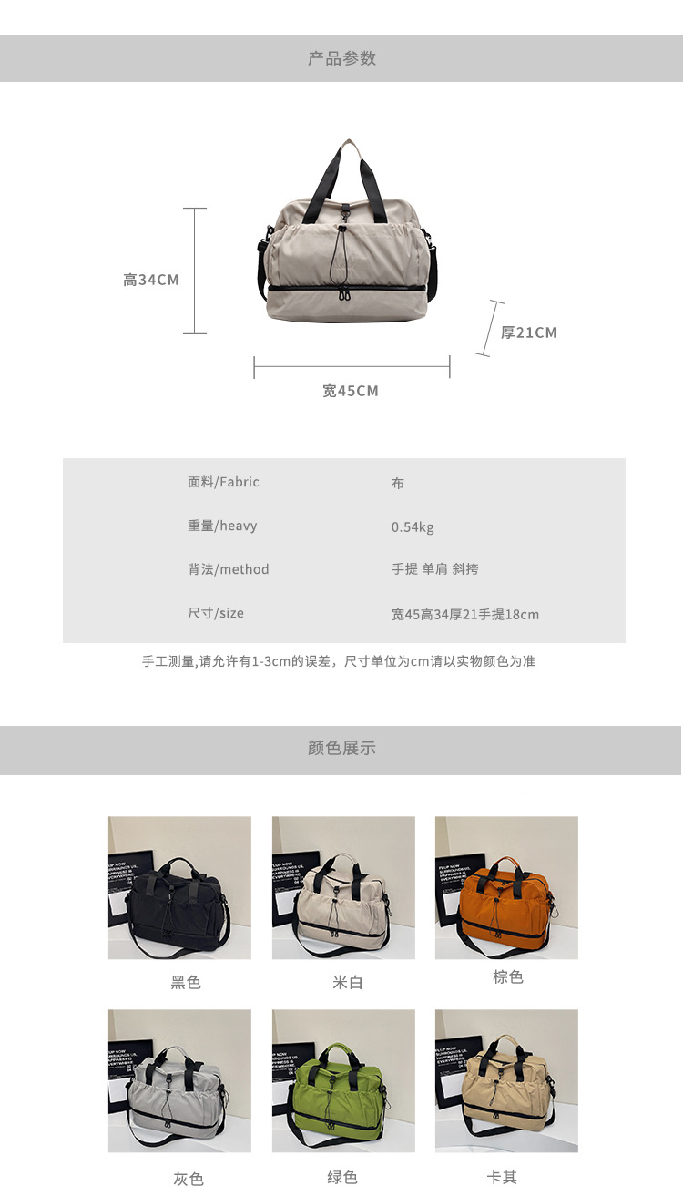 남녀공용 건습분리 피트니스백, 단거리 출장용 여행가방, 심플하고 캐주얼한 대용량 신발칸 수하물가방