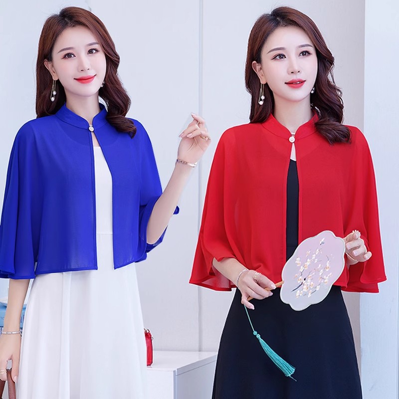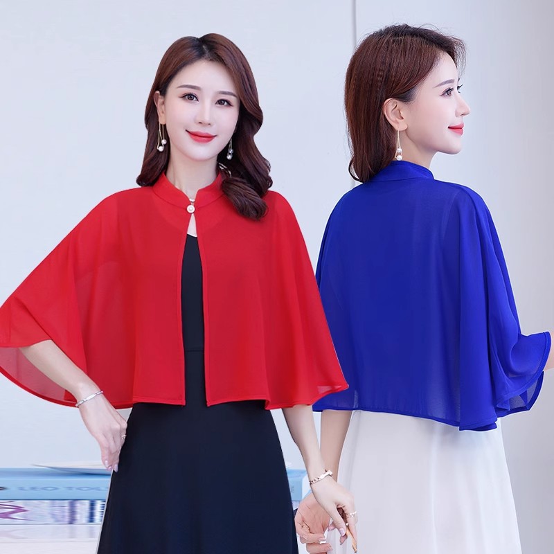 시폰 셔츠 케이프, 여성용 자외선 차단 숄, 스커트와 얇은 코트를 매치한 여성용 만능 가디건, 짧은 시폰 숄스토어 가기