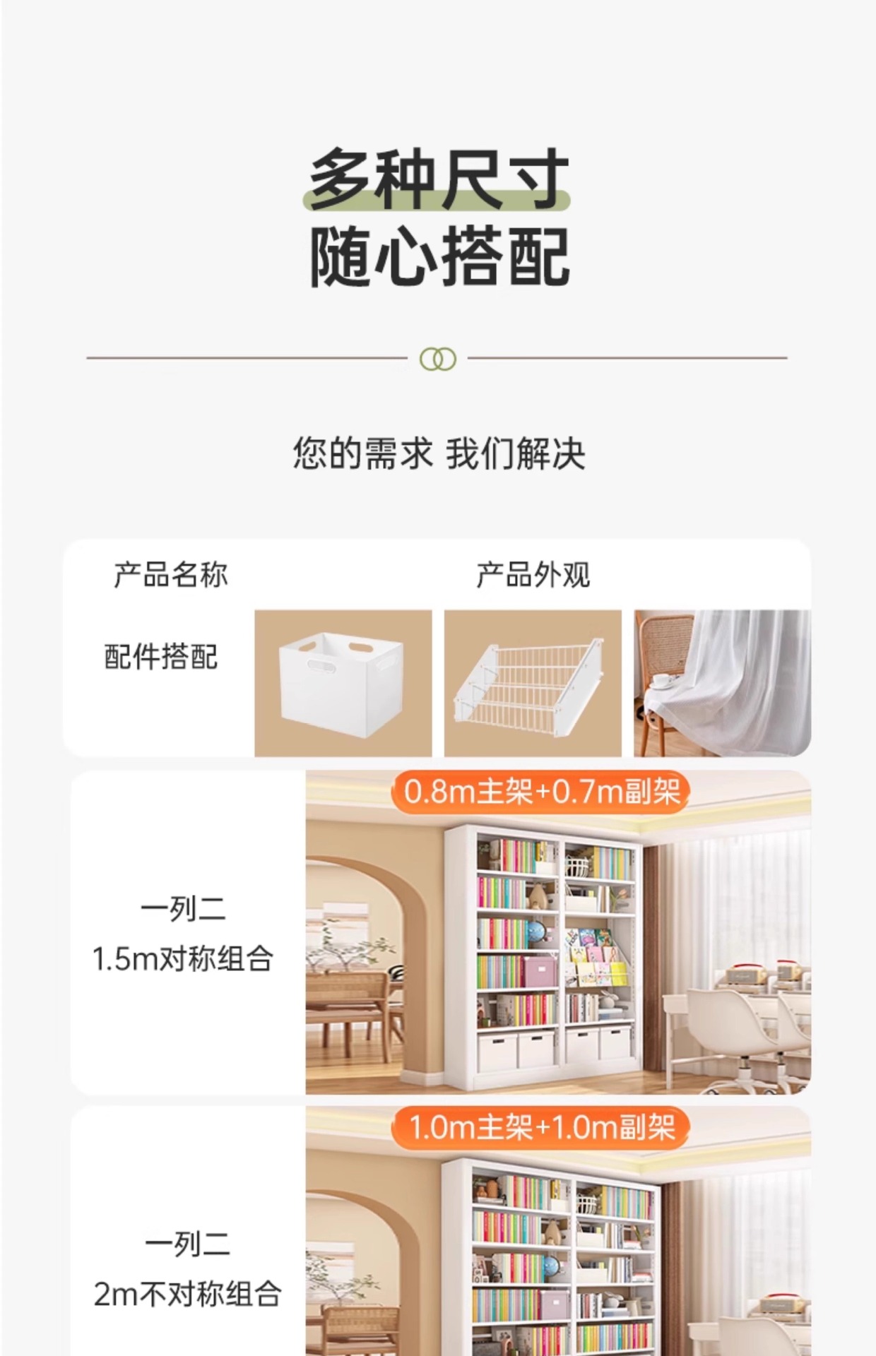 가정용 강철 책장 보관함 도서관 다층 보관 거실 바닥 책장 어린이 그림책 선반 보관함