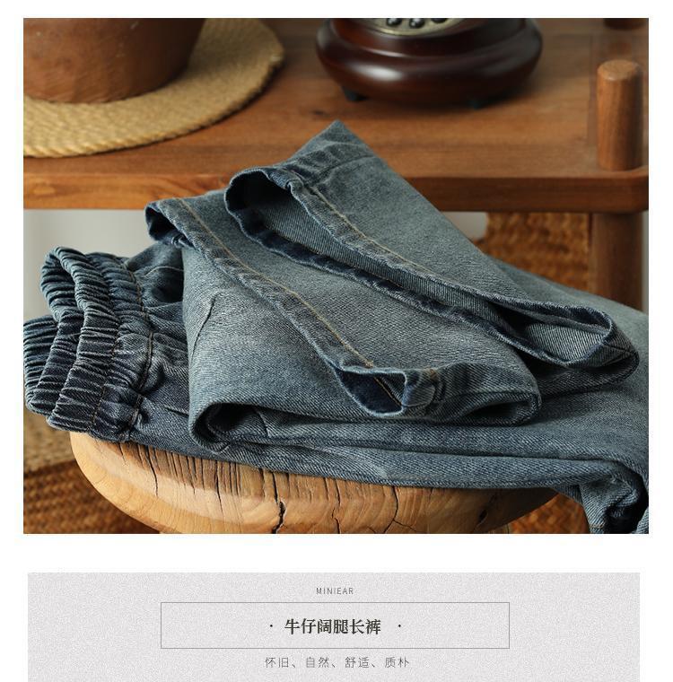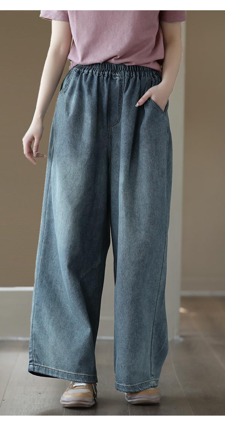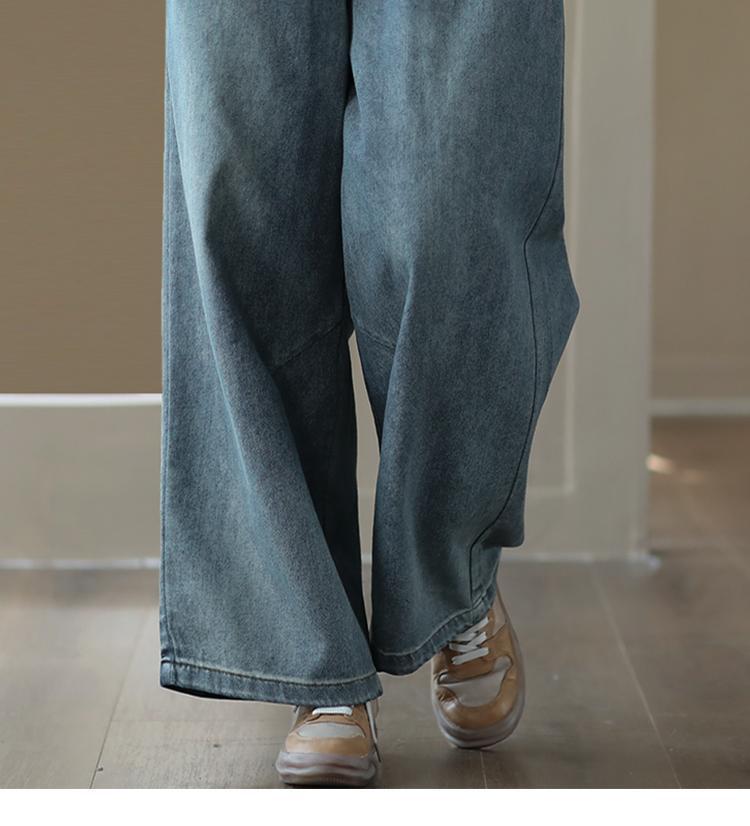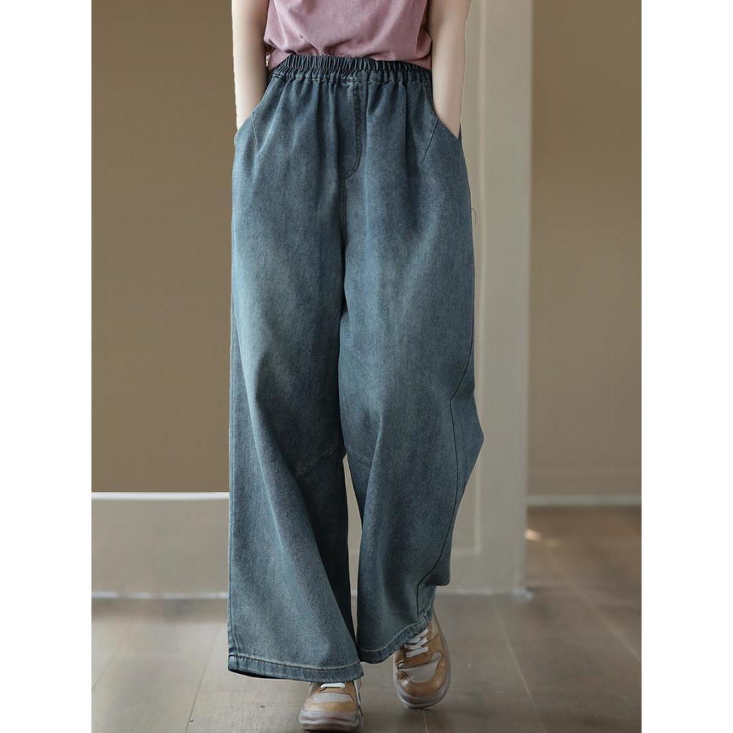 유럽과 미국 스타일의 여성 복고풍 청바지 여성 여름 와이드 레그 팬츠 캐주얼 바지 루즈한 봄, 가을 스트레이트 팬츠 여성용 바지스토어 가기
