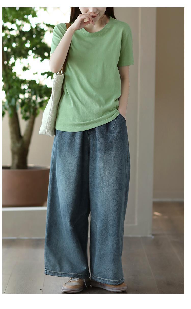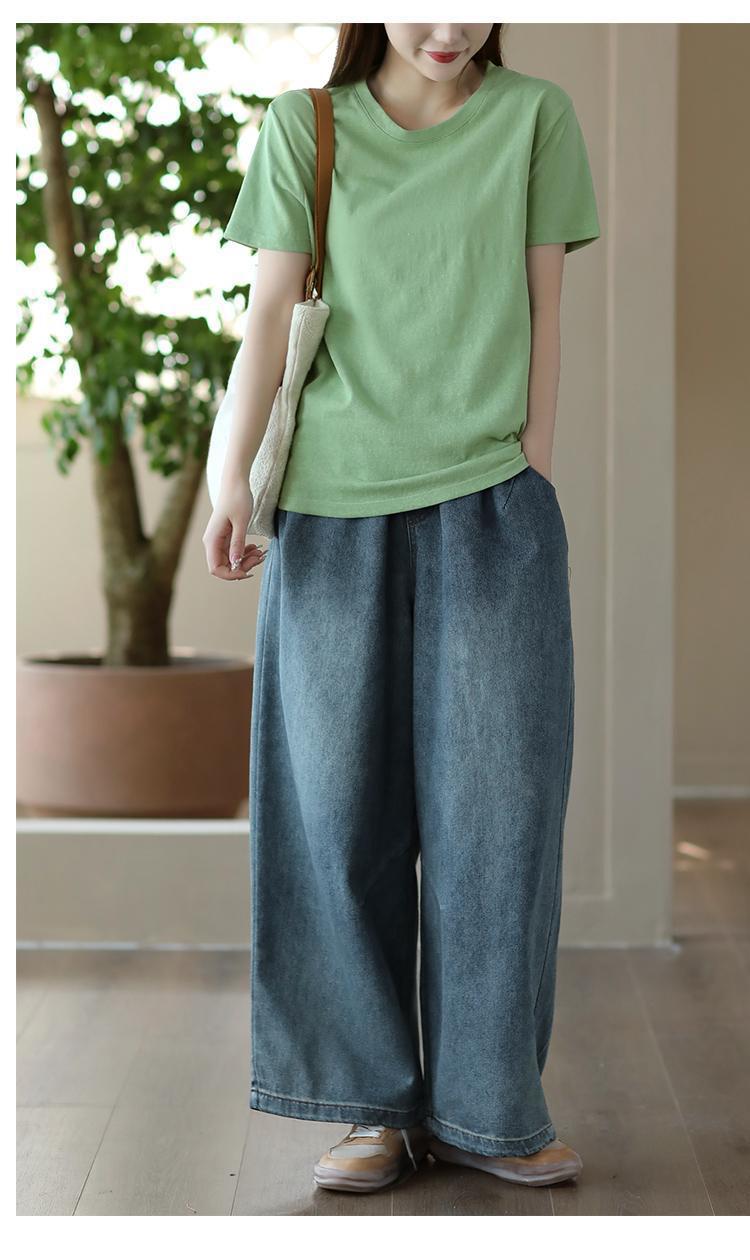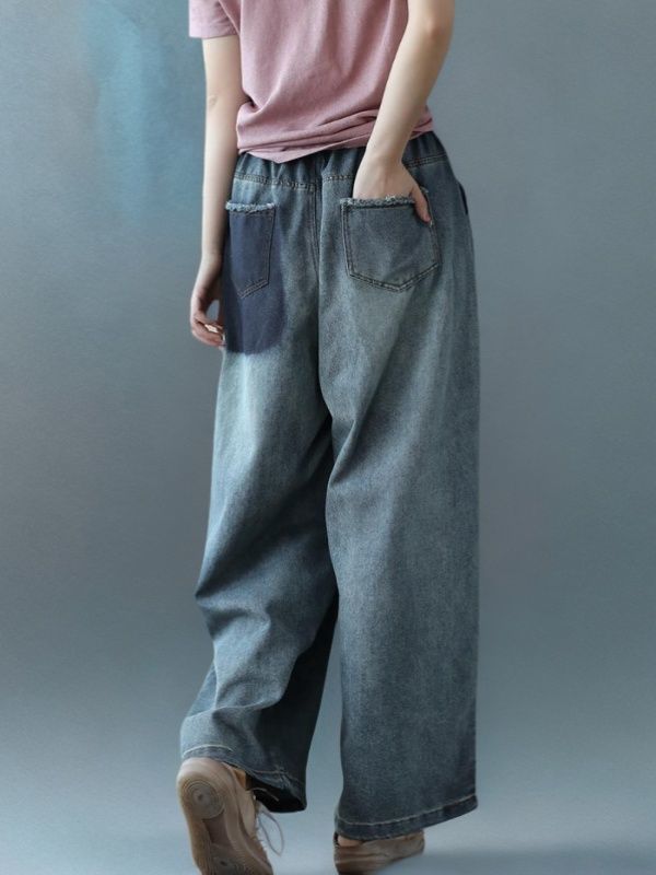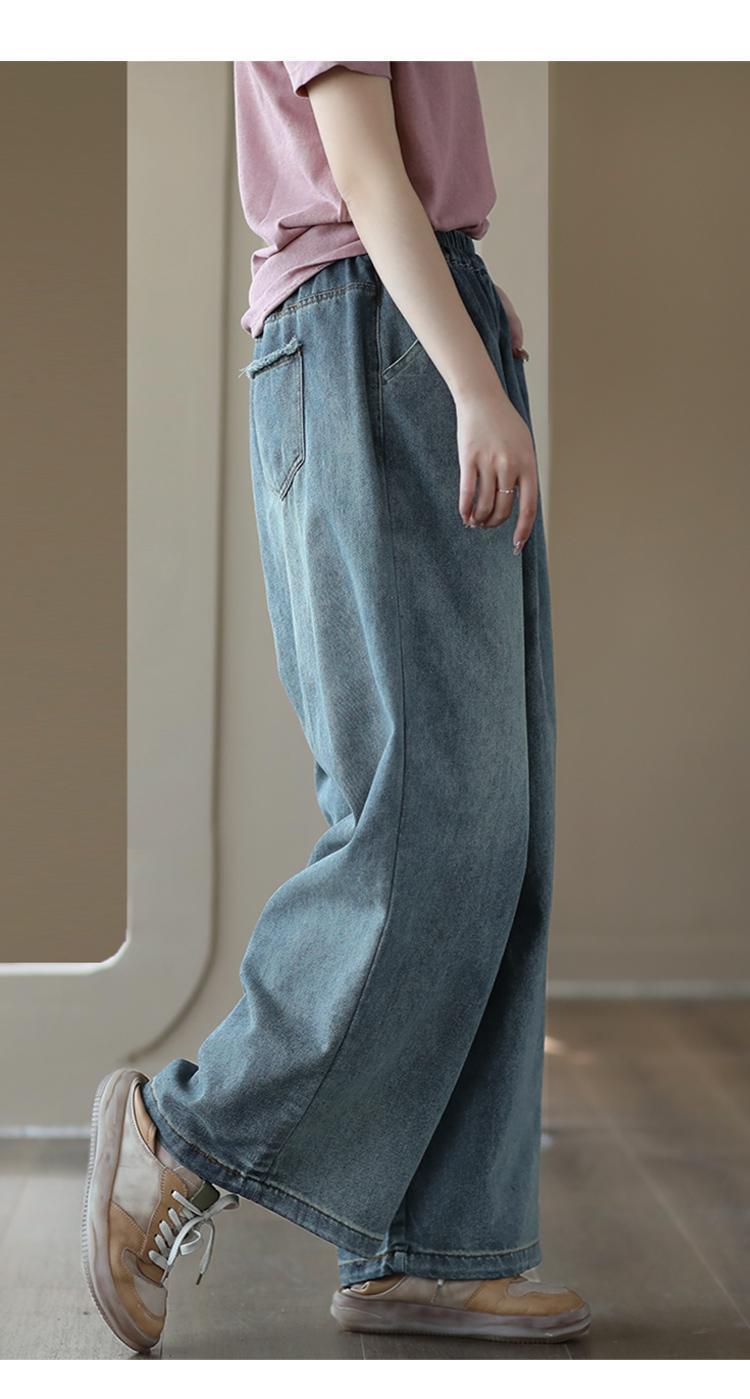 유럽과 미국 스타일의 여성 복고풍 청바지 여성 여름 와이드 레그 팬츠 캐주얼 바지 루즈한 봄, 가을 스트레이트 팬츠 여성용 바지스토어 가기