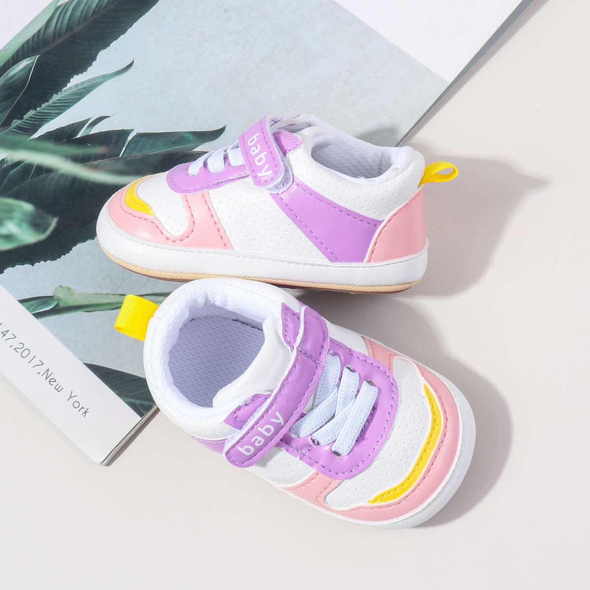 0-1 세 PU 방수 가죽 표면 아기 신발 미끄럼 방지 고무 단독 유아 신발 패션 통기성 아기 신발