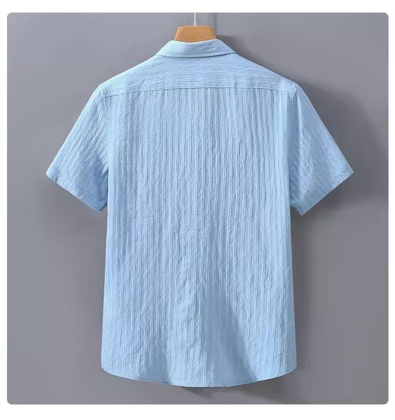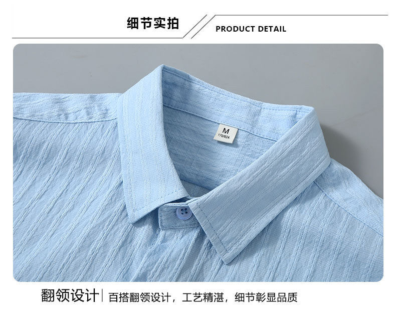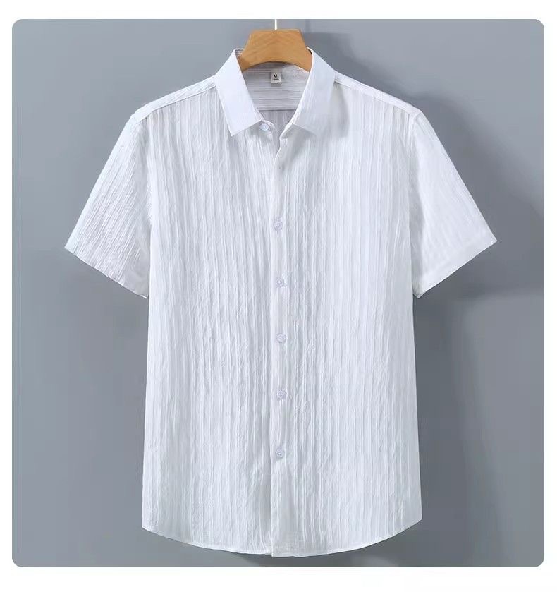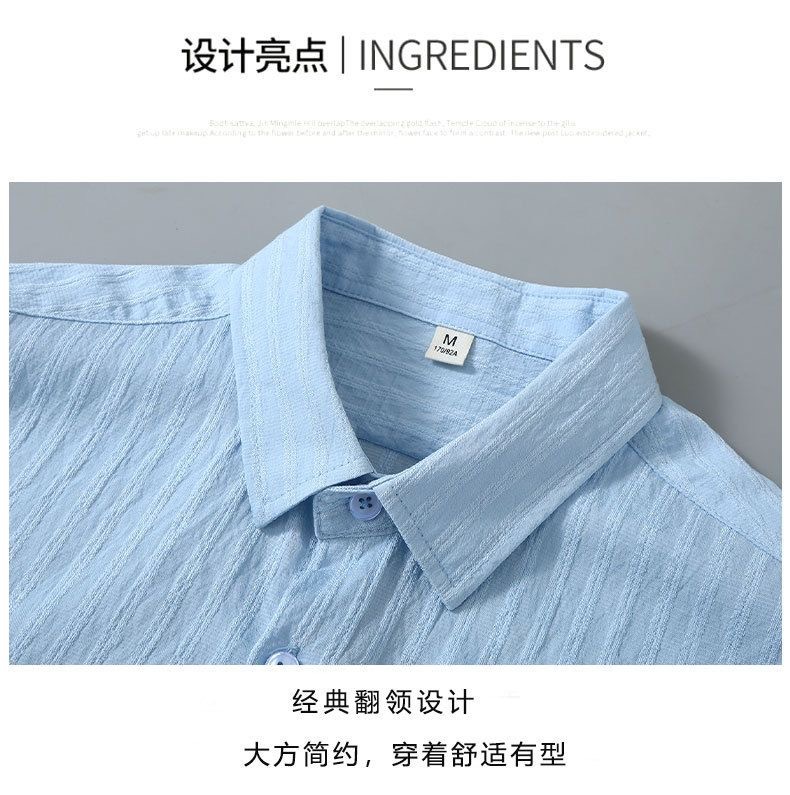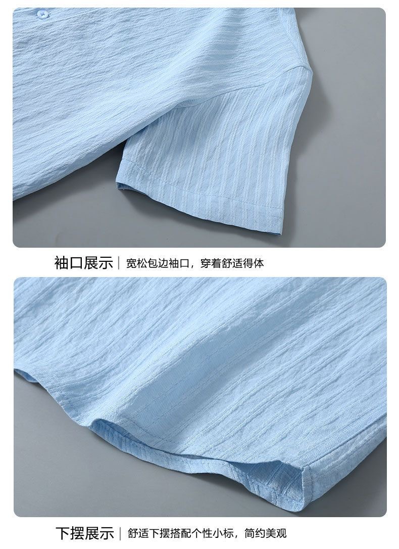 남자 반팔 셔츠 여름 얇은 일본 예술적 캐주얼 올 매치 루즈 셔츠 줄무늬 자카드 선 스크린 탑스토어 가기