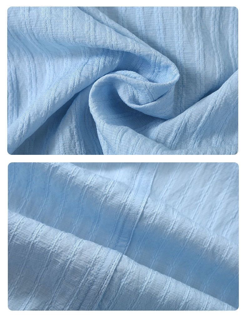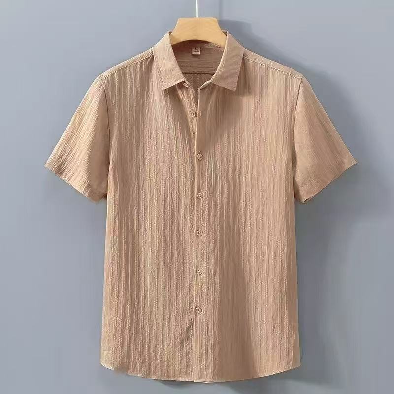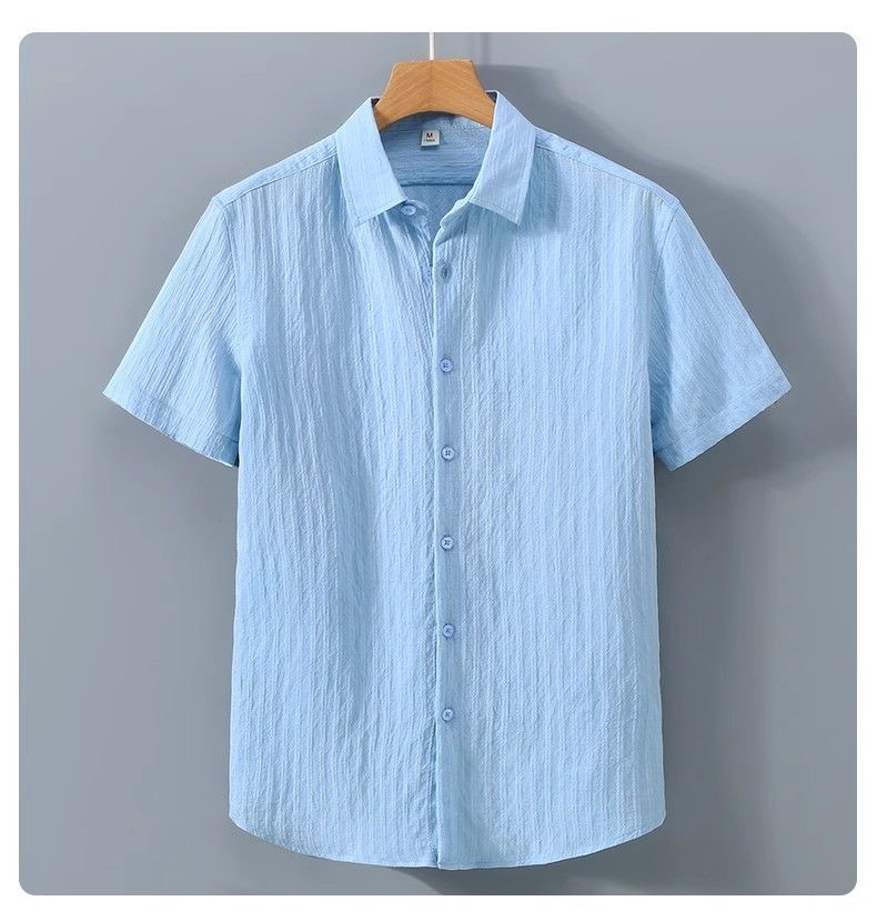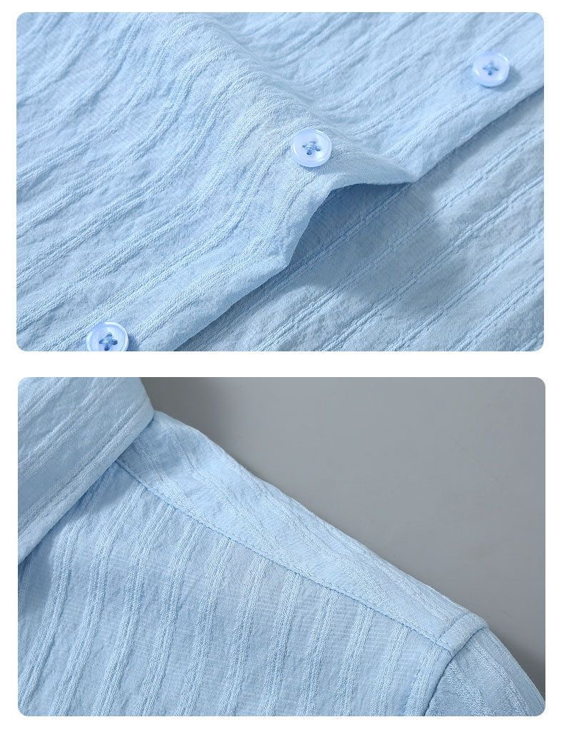 남자 반팔 셔츠 여름 얇은 일본 예술적 캐주얼 올 매치 루즈 셔츠 줄무늬 자카드 선 스크린 탑스토어 가기